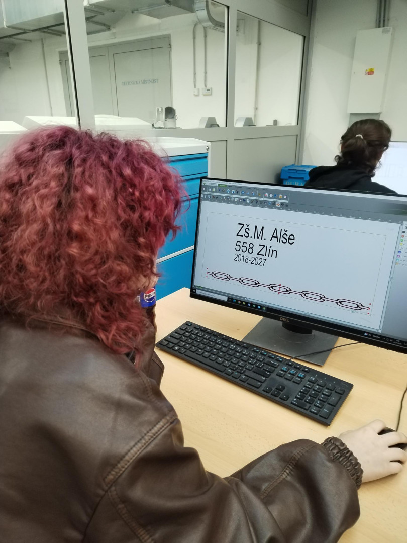Kreativní část programu patřila oboru grafik–tiskař. Zde si žáci vyzkoušeli práci s grafickými návrhy a dozvěděli se, jak probíhá proces tisku od návrhu až po finální produkt.