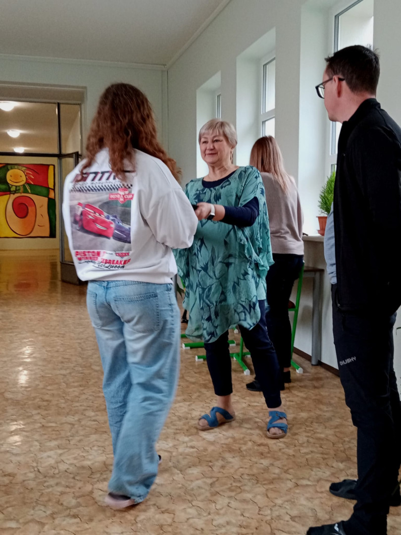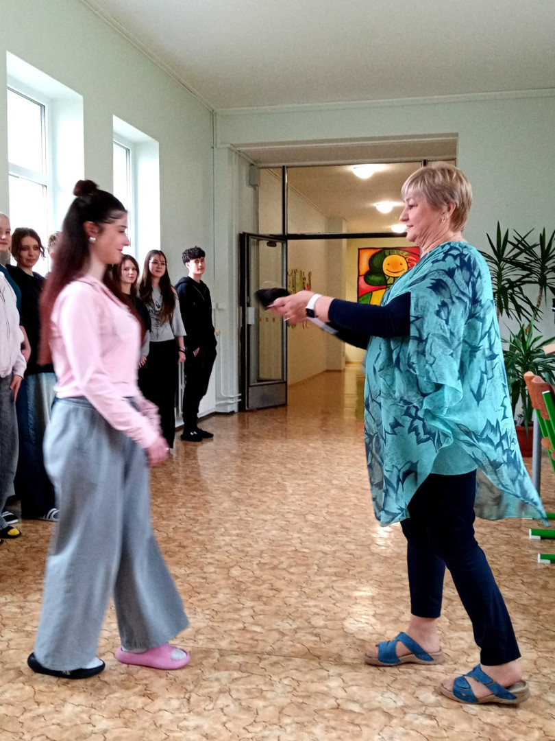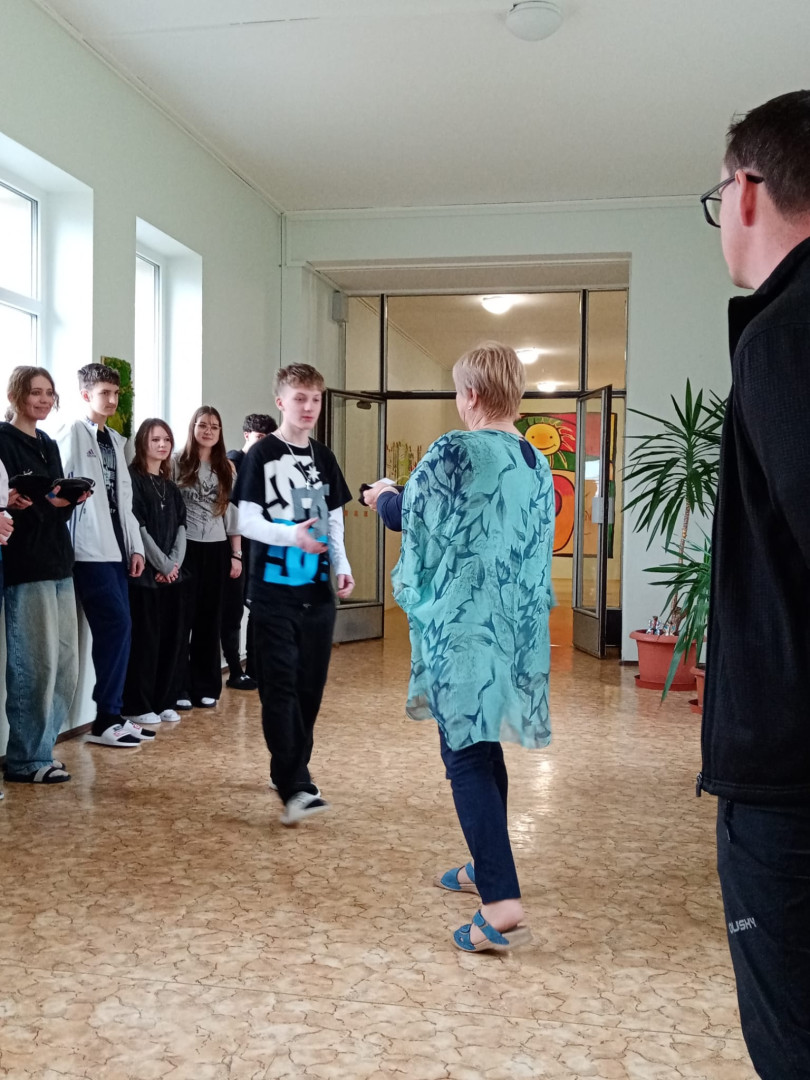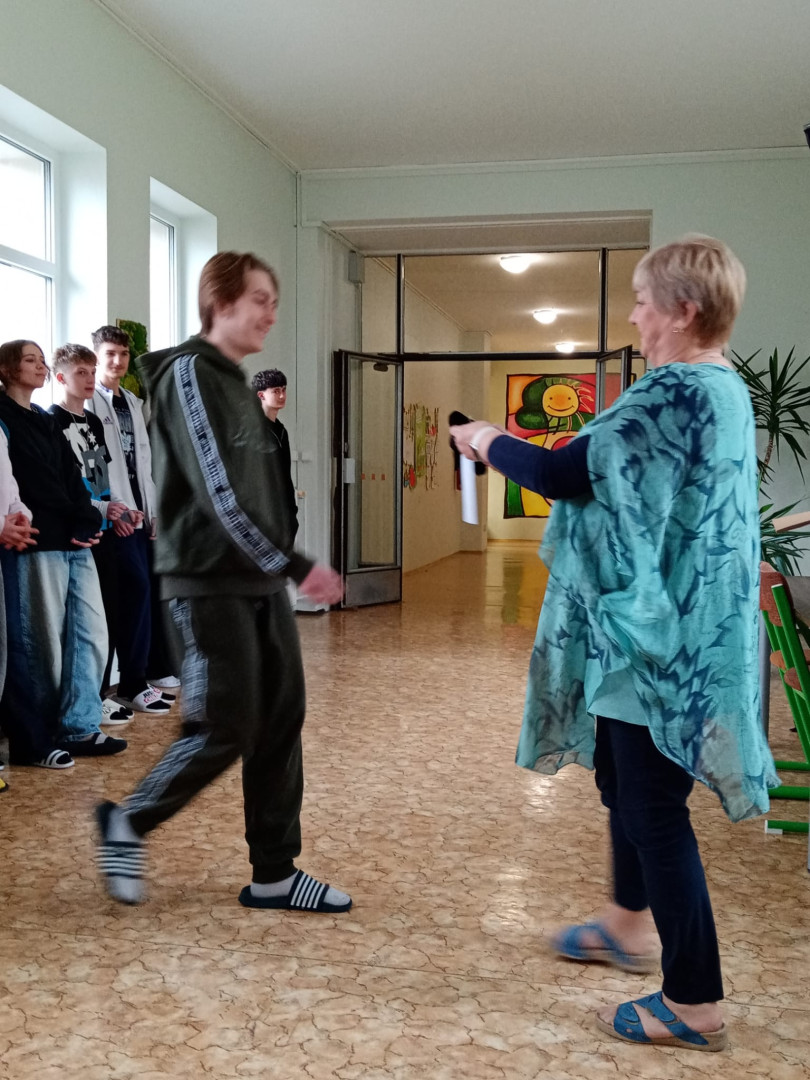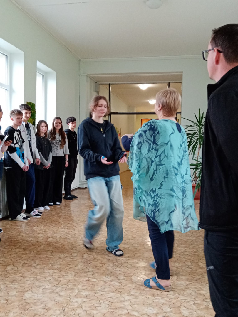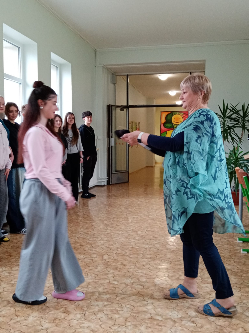 S žáky 9.B se letos přišla písničkou rozloučit třída 3.C. Paní ředitelka krátce promluvila k žákům, popřála jim hodně štěstí u přijímacích zkoušek a předala jim trička.