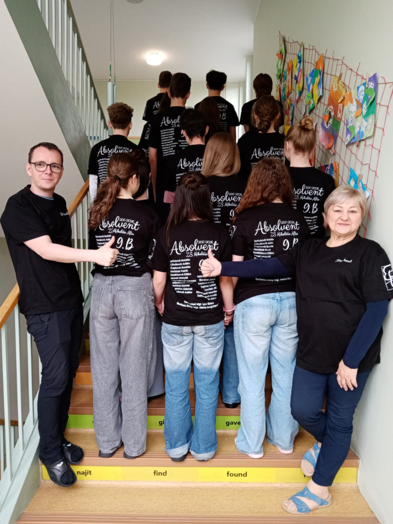 Mezi naše tradice patří předávání absolventských triček žákům devátého ročníku.