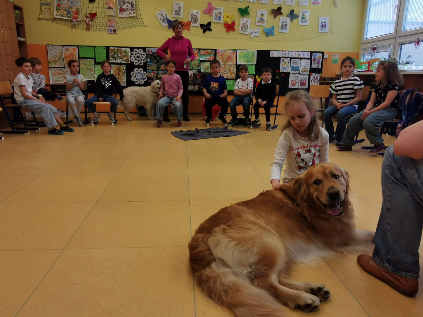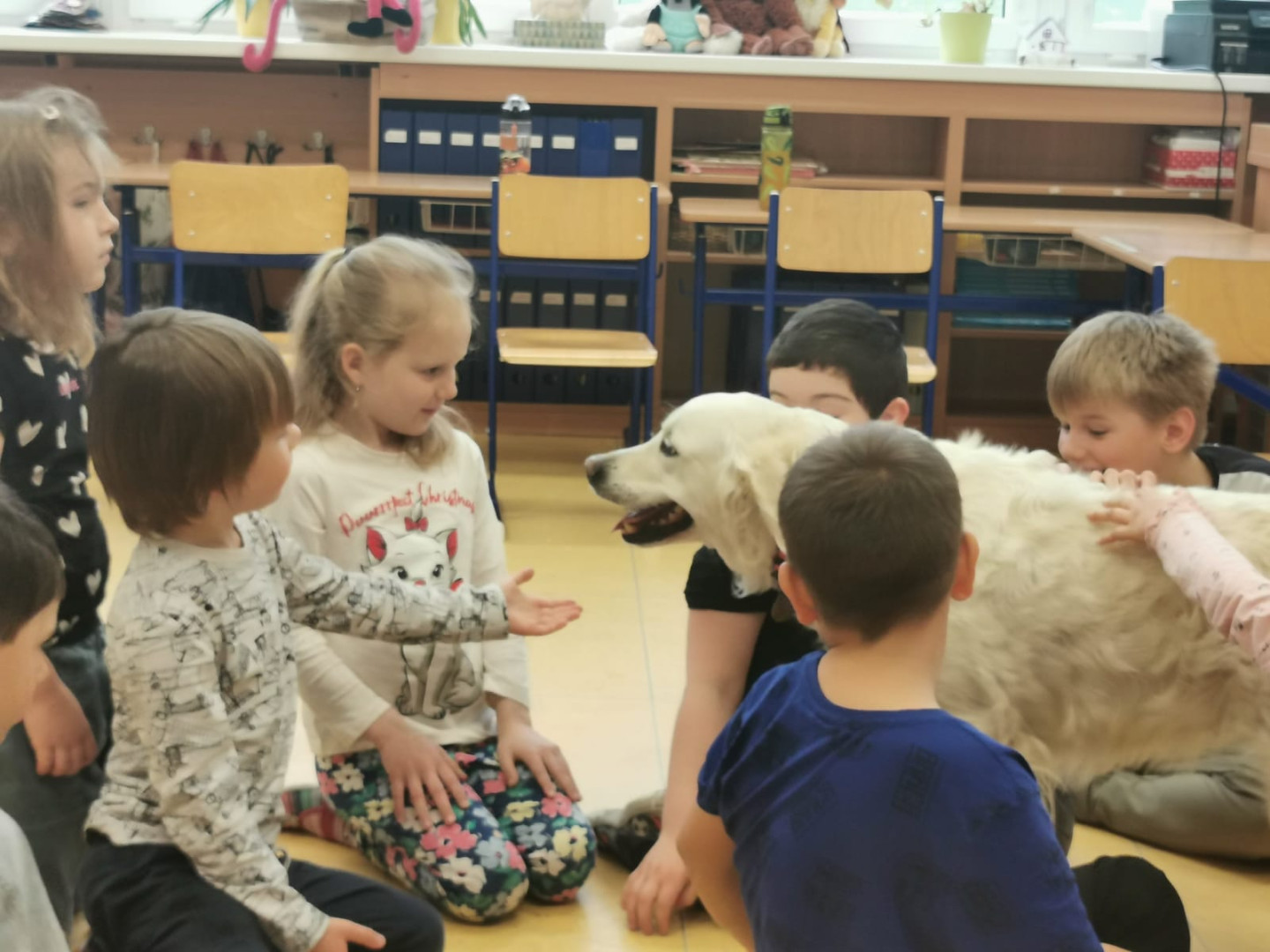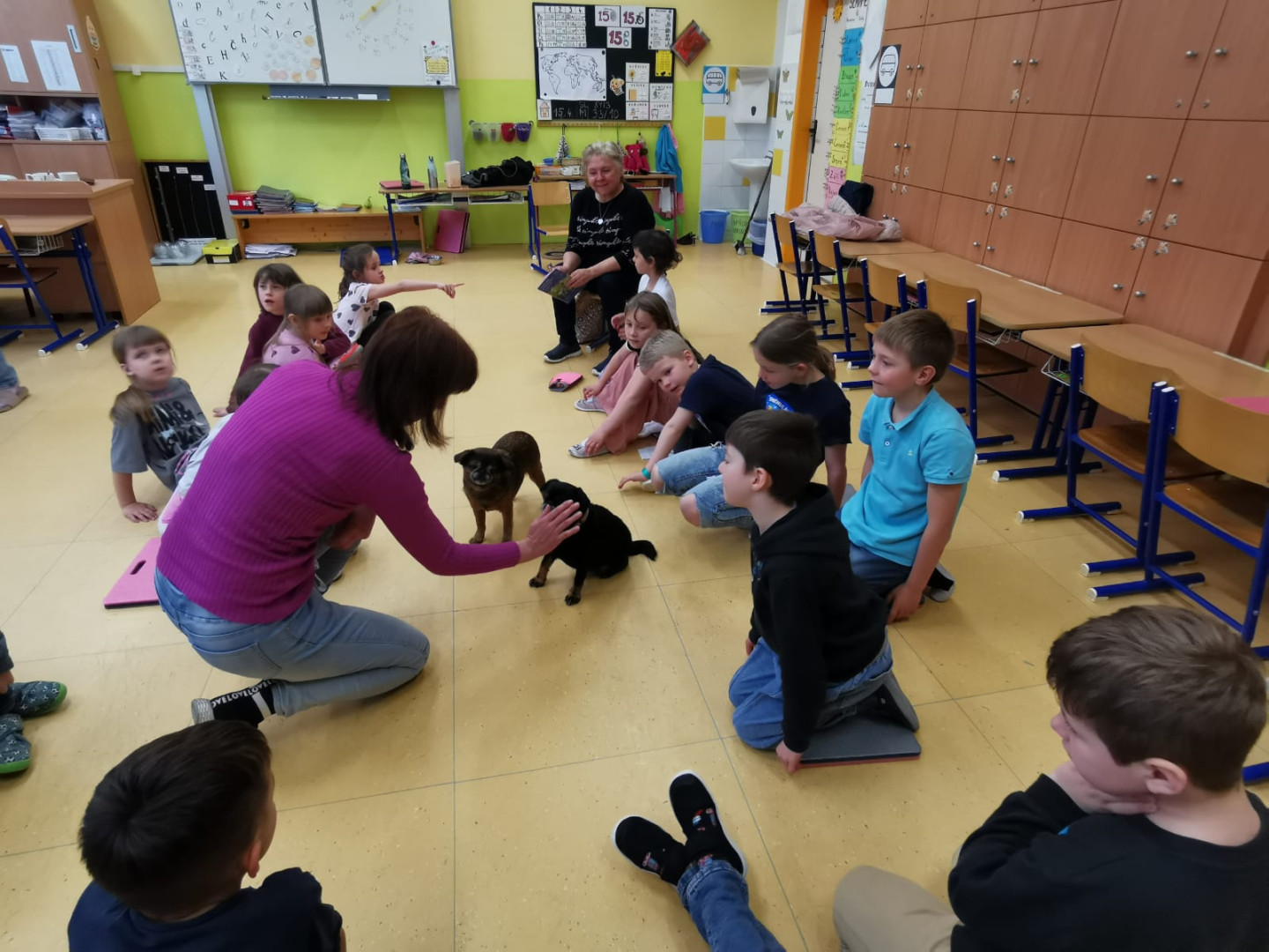 Naše prvňáčky navštívili vzácní hosté – pejsci z organizace Bratrstvo psích tlapek. Děti se dozvěděly mnoho zajímavého o tom, jak správně pečovat o psy a jak porozumět jejich chování.