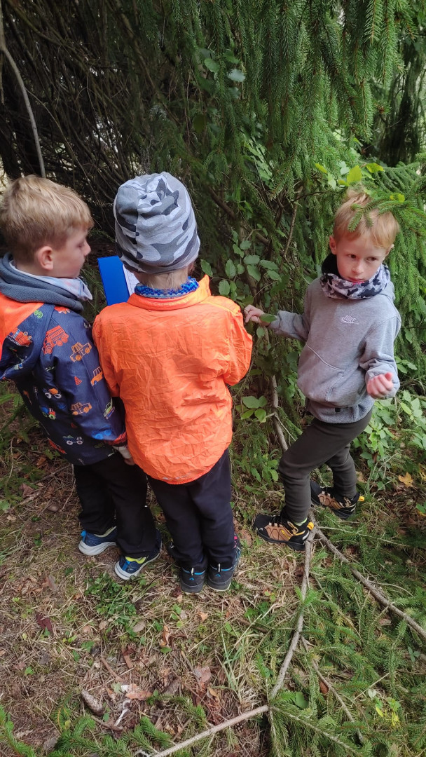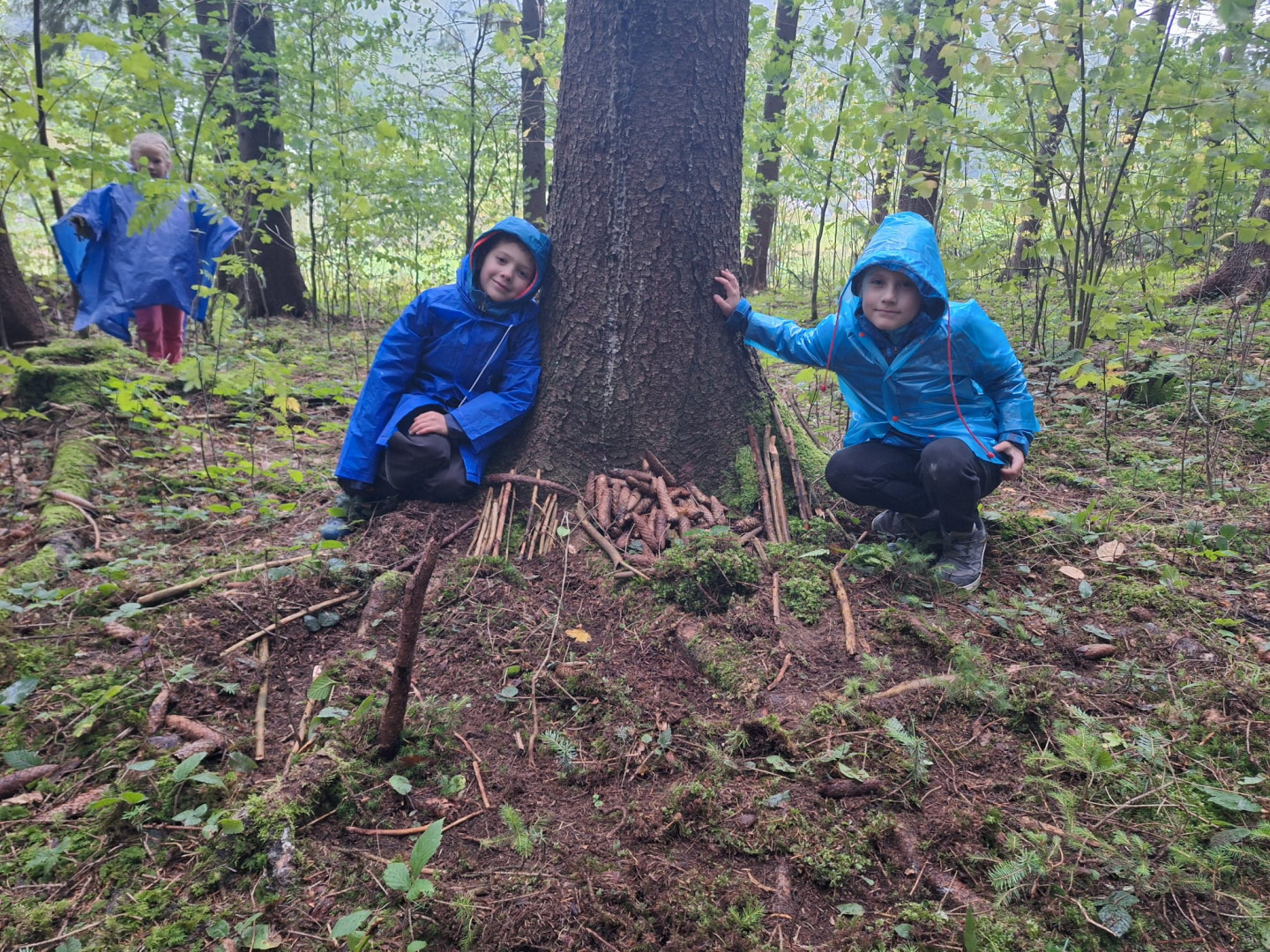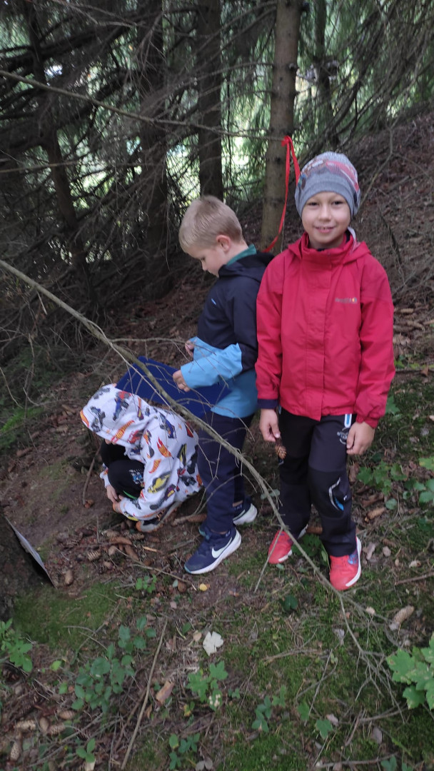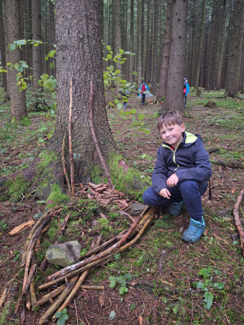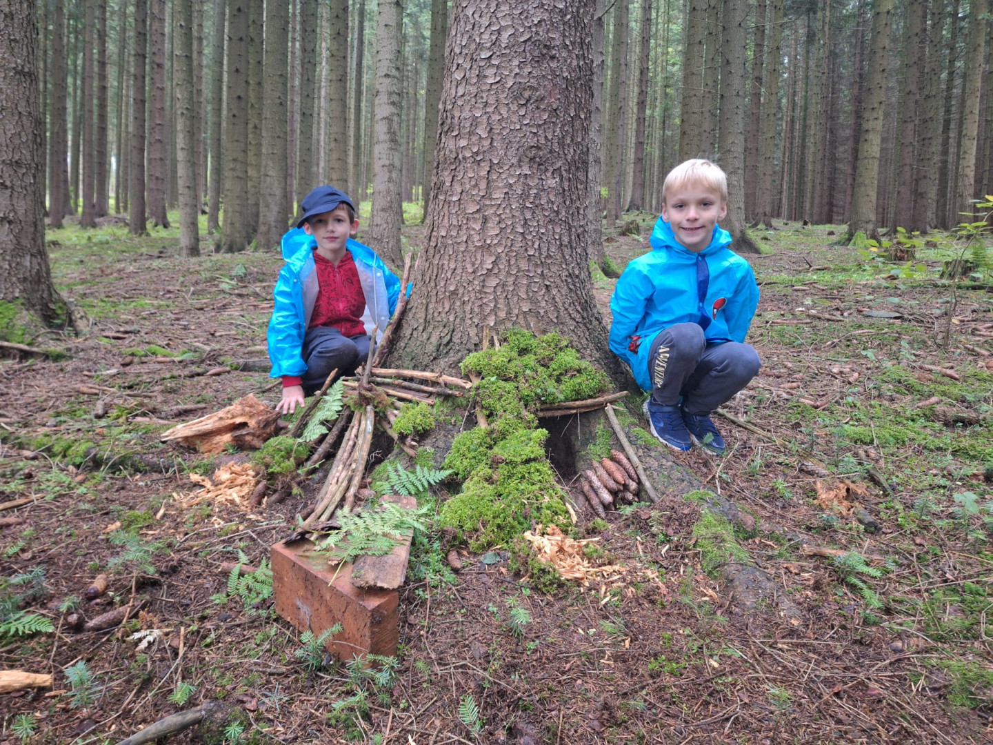 Odpoledne jsme se věnovali výrobě domečků v lese a dílničkám. Tento den jsme uzavřeli stezkou odvahy.