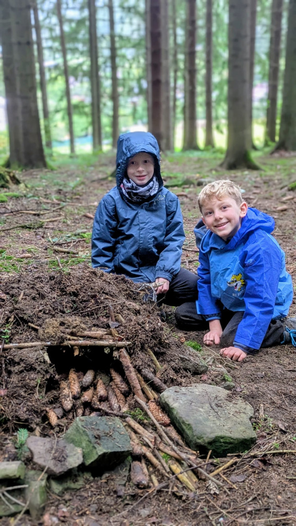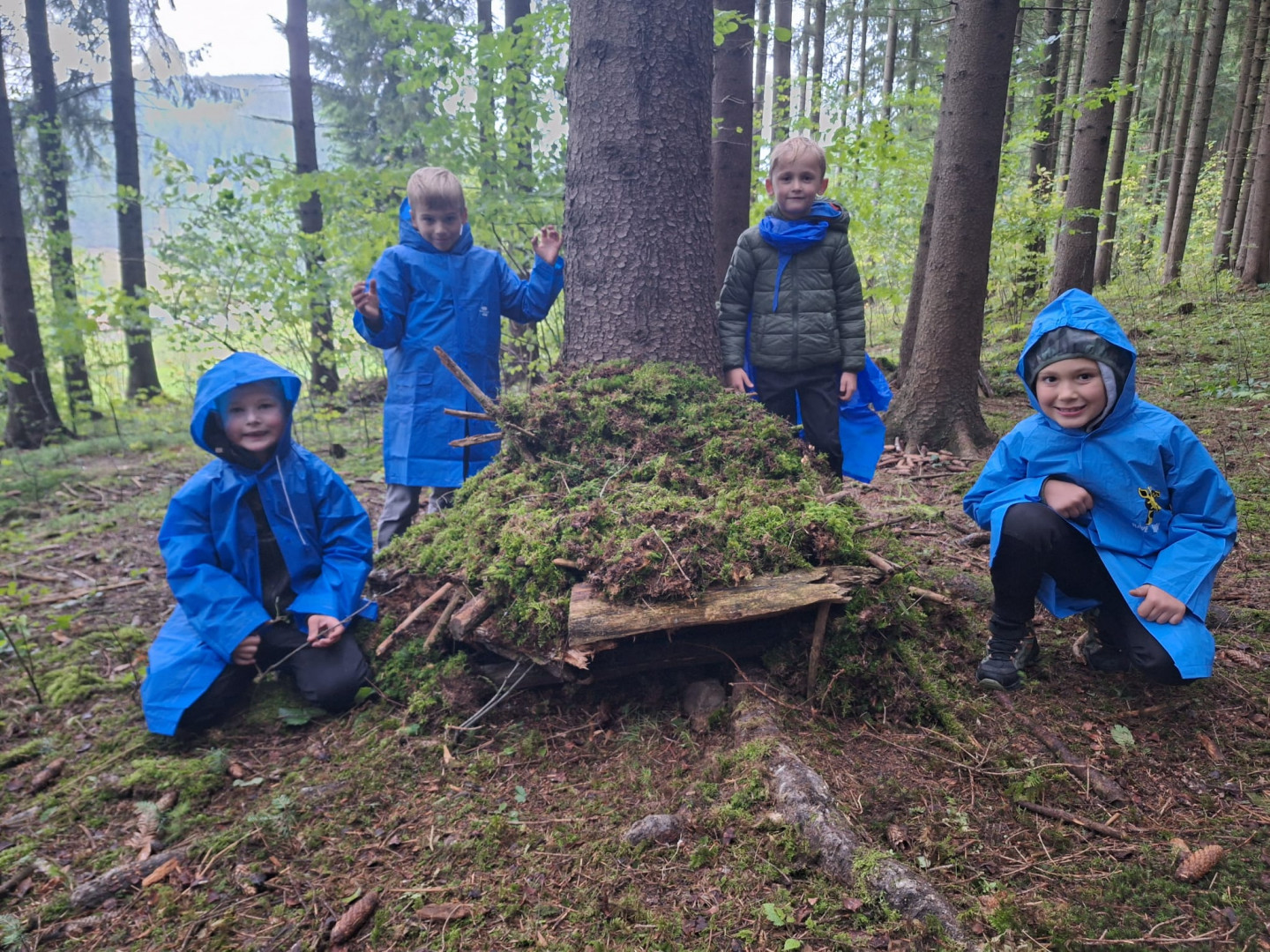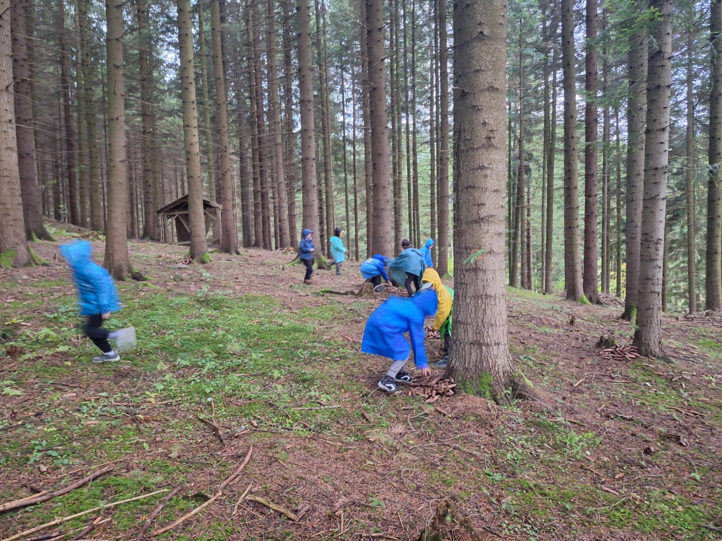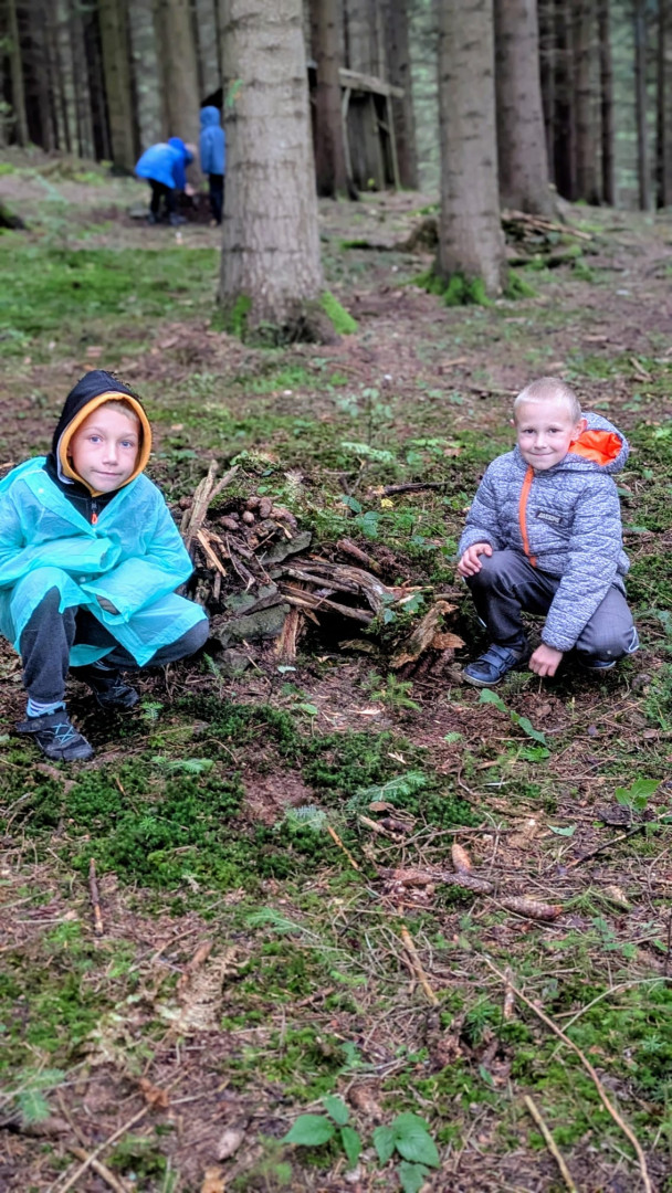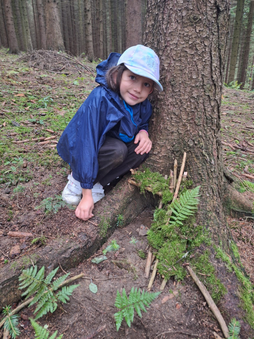 Odpoledne jsme se věnovali výrobě domečků v lese a dílničkám. Tento den jsme uzavřeli stezkou odvahy.