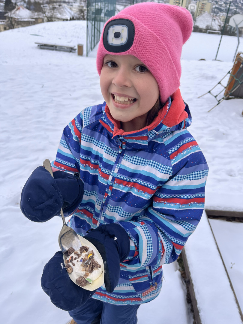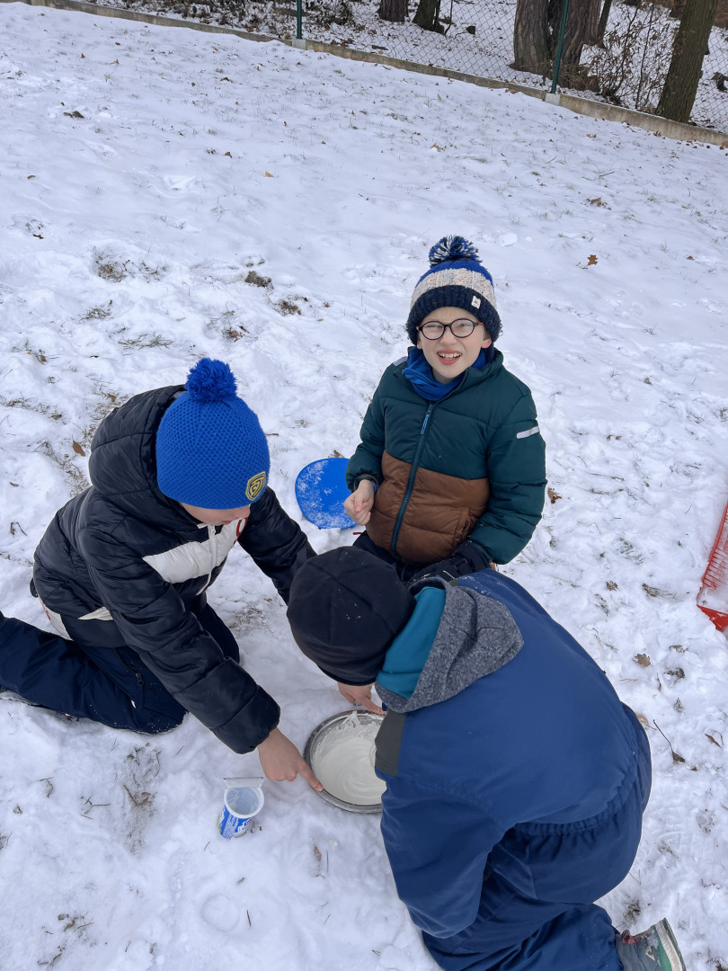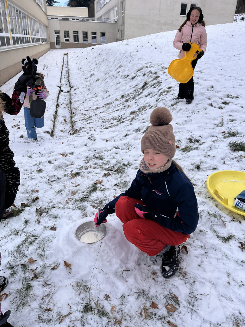 Dnešní den jsme s žáky 5. ročníku pojali trochu jinak. Učení ve třídě jsme na chvíli vyměnili za zážitek, který spojil radost, spolupráci a pobyt venku. Společně jsme se vydali ven, kde jsme si vyzkoušeli výrobu domácí zmrzliny ze smetany.
