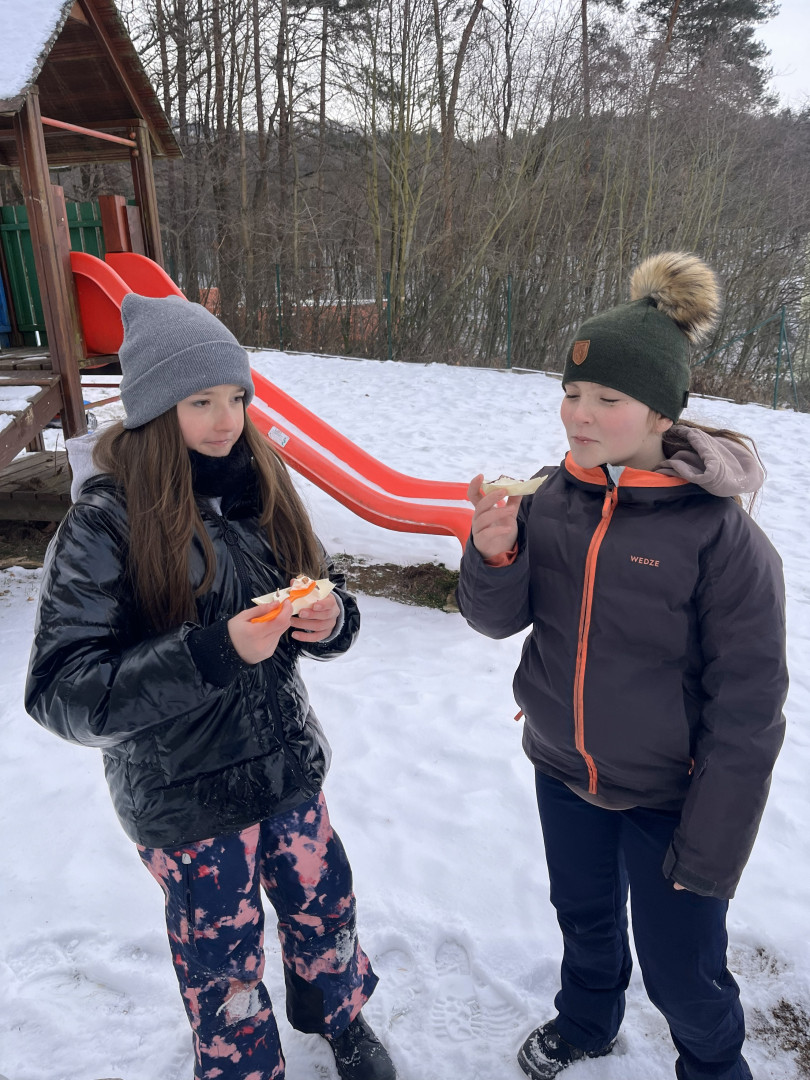 Po naší tvrdé práci přišla zasloužená odměna v podobě ochutnávky. Dopolední radování jsme zakončili bobováním. S červenými tvářemi jsme se vrátili spokojení do školy a šli se posilnit výborným obědem.