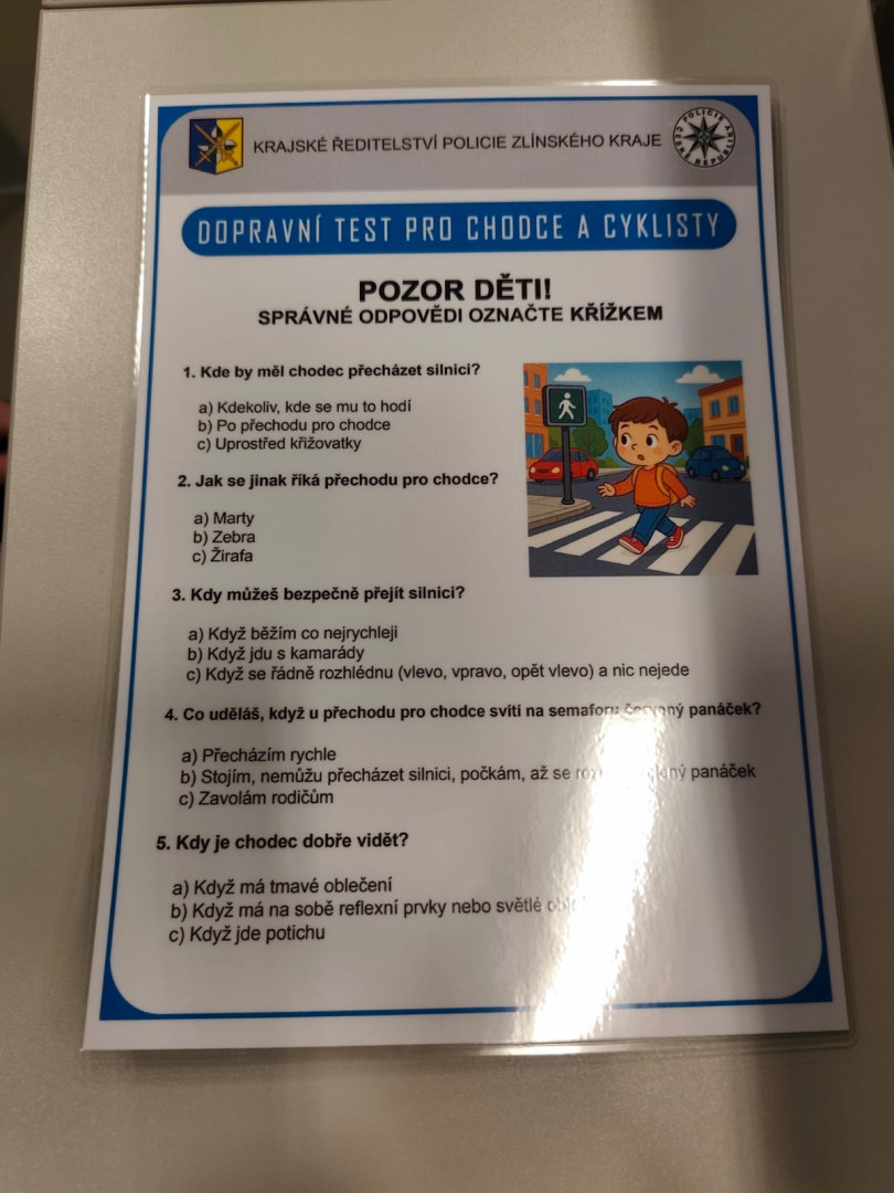 Muzeum Zlín uspořádalo akci Hravě záchranářem pro 3.třídy. Rádi jsme se této akce zúčastnili a zároveň si všechny aktivity z prostředí policie, rychlé zdravotnické pomoci i hasičů pěkně užili. Vyzkoušeli jsme si jízdu na koloběžkách v provozu dopravního hřiště, záchranu člověka ve vodě i na souši, zopakovali jsme si, jak má vypadat správně vybavené jízdní kolo, bezchybně jsme vyplnili dopravní text, s virtuálními brýlemi jsme se dostali do situace, kdy nám hrozilo nebezpečí na vozovce při přecházení a podrobně jsme prozkoumali policejní motorku, auto, záchranku i hasičské auto. Bylo to prima dopoledne a naučili jsme se spoustu věcí, které se nám mohou kdykoliv hodit.
