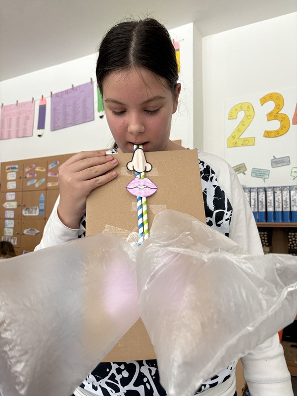 V hodinách přírodovědy se žáci 5. A pustili do výroby vlastního modelu lidských plic. Cílem bylo lépe porozumět tomu, jak funguje dýchací soustava a proč je dýchání pro naše tělo tak důležité.