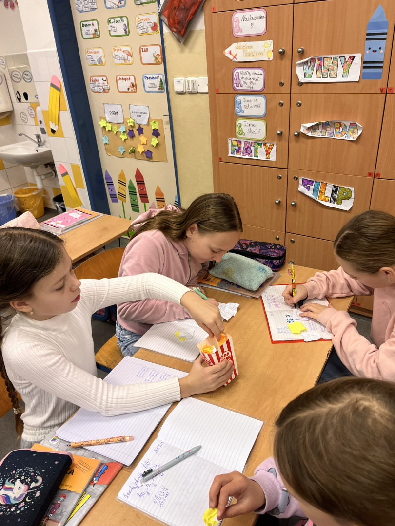 Popcorn v matematice? Proč ne! Vytáhni si z krabičky 3 papírky (2 bílé a jeden barevný), slož příklad a počítej. A že jsi dobrý počtář? Tím líp! Pro Vás je nachystaný speciální „spicy“ popcorn, ve kterém jsou opravdu těžké příklady.