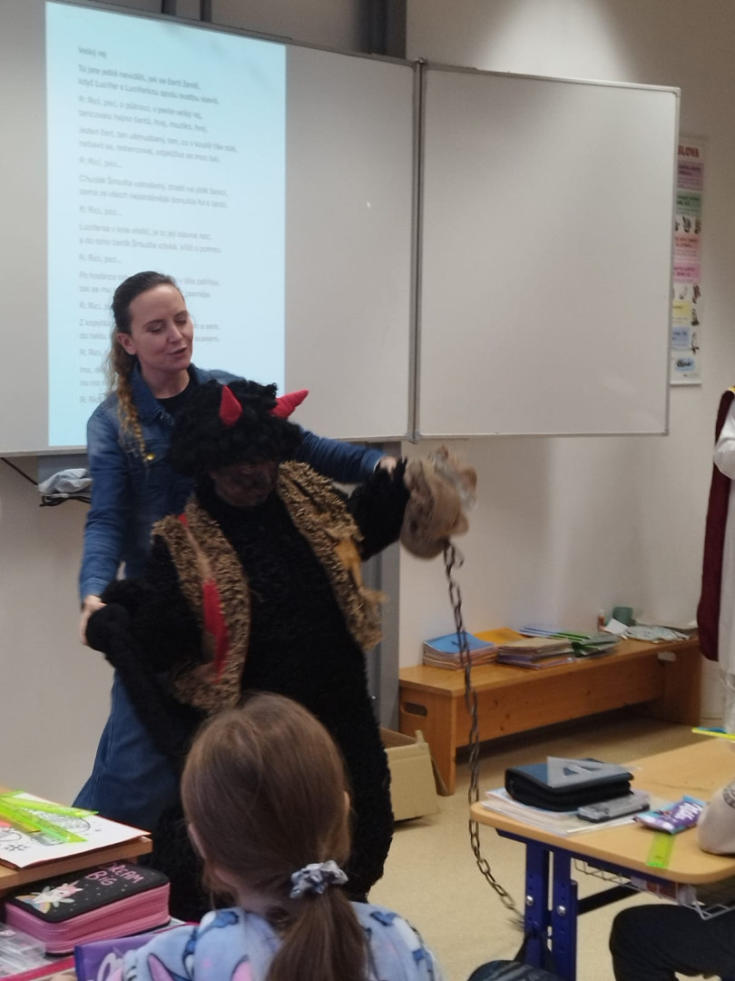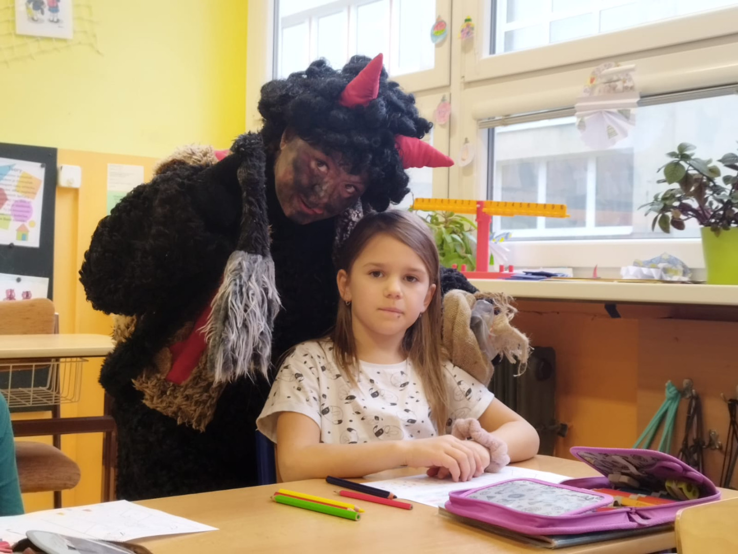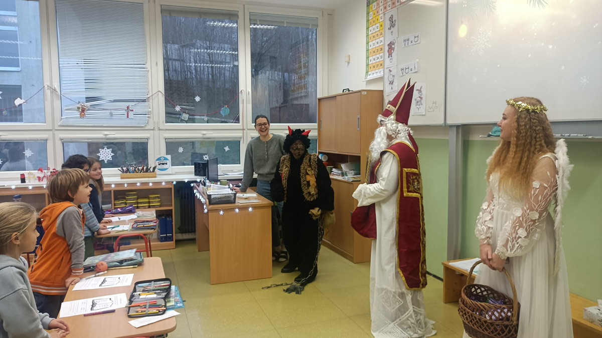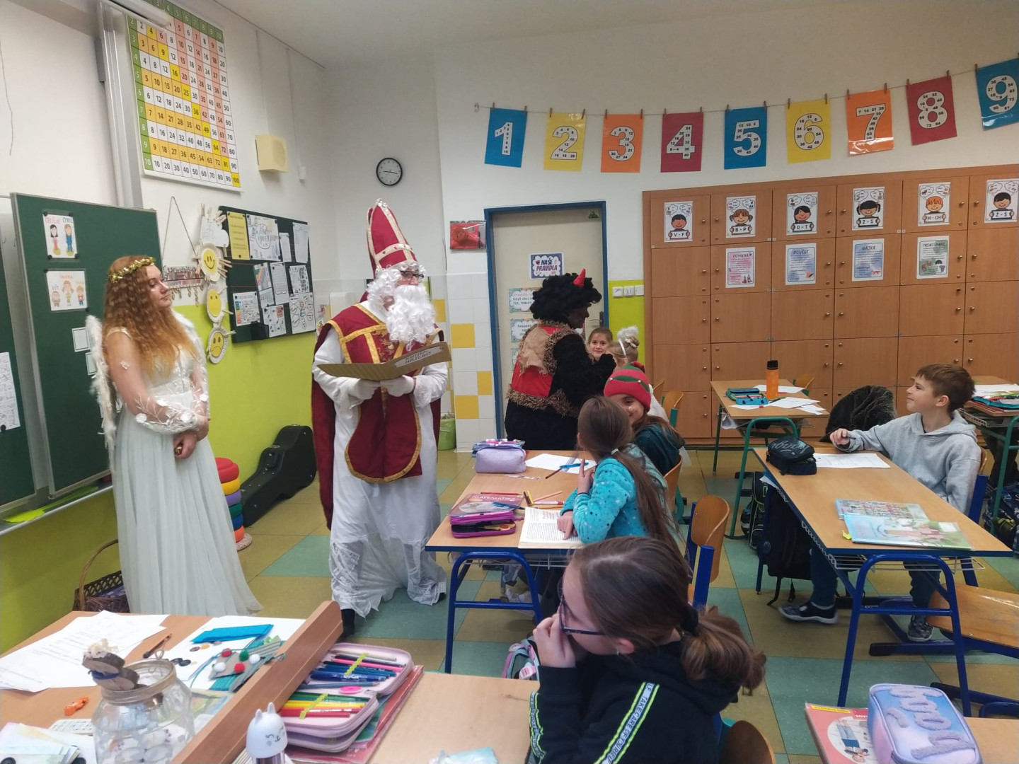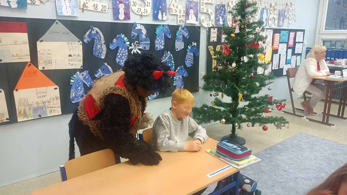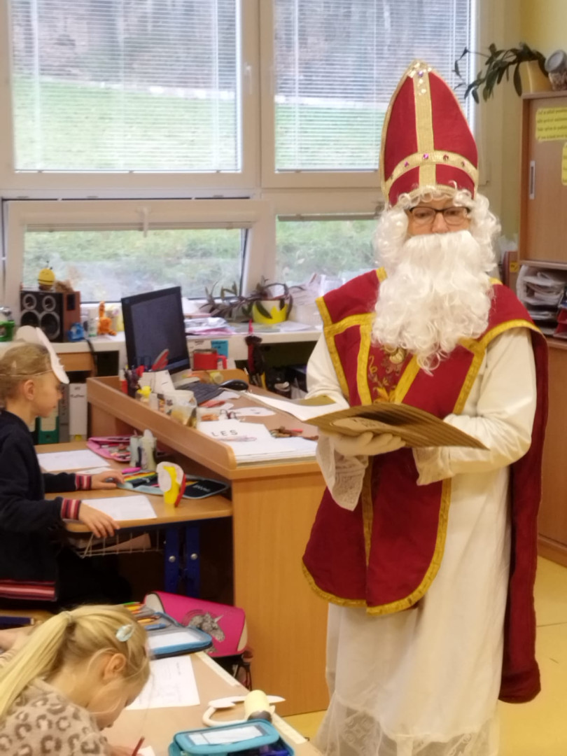 Tak jako každý rok i letos zavítal do naší školy Mikuláš se svými věrnými pomocníky – andělem a čertem. Jejich kroky je zavedly hlavně k žákům prvního stupně, kteří se na jejich příchod těšili už od rána a nemohli se dočkat.