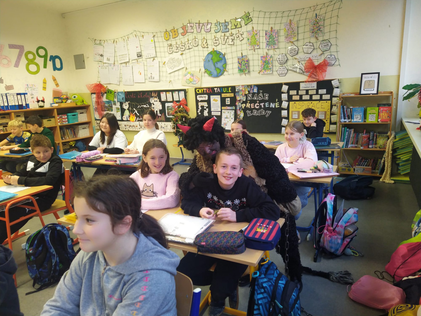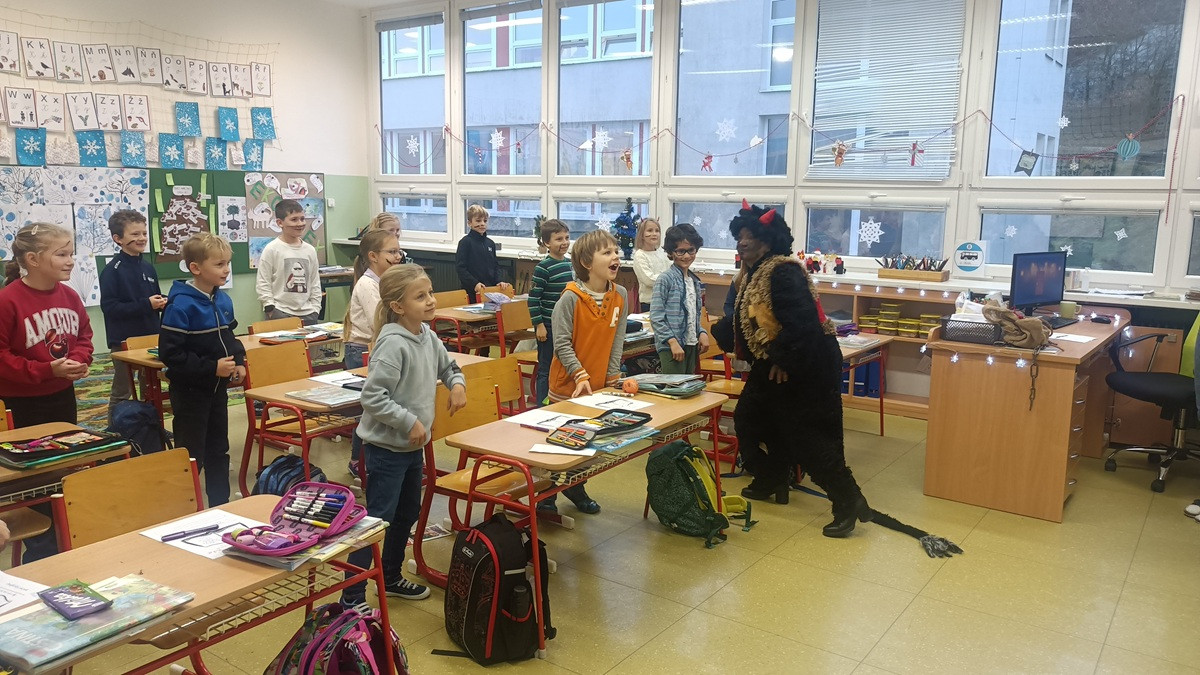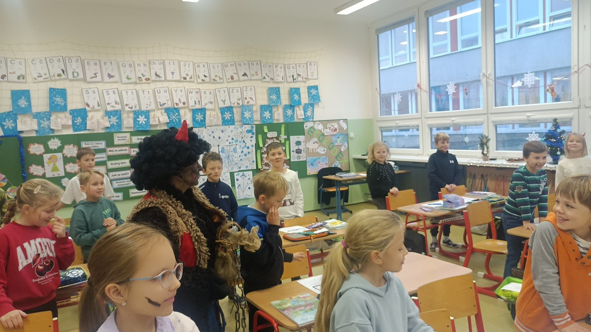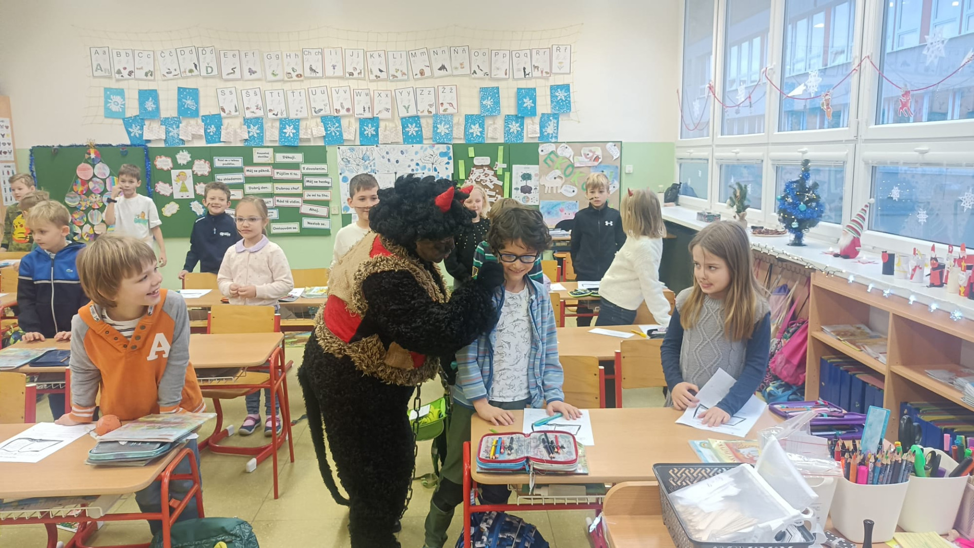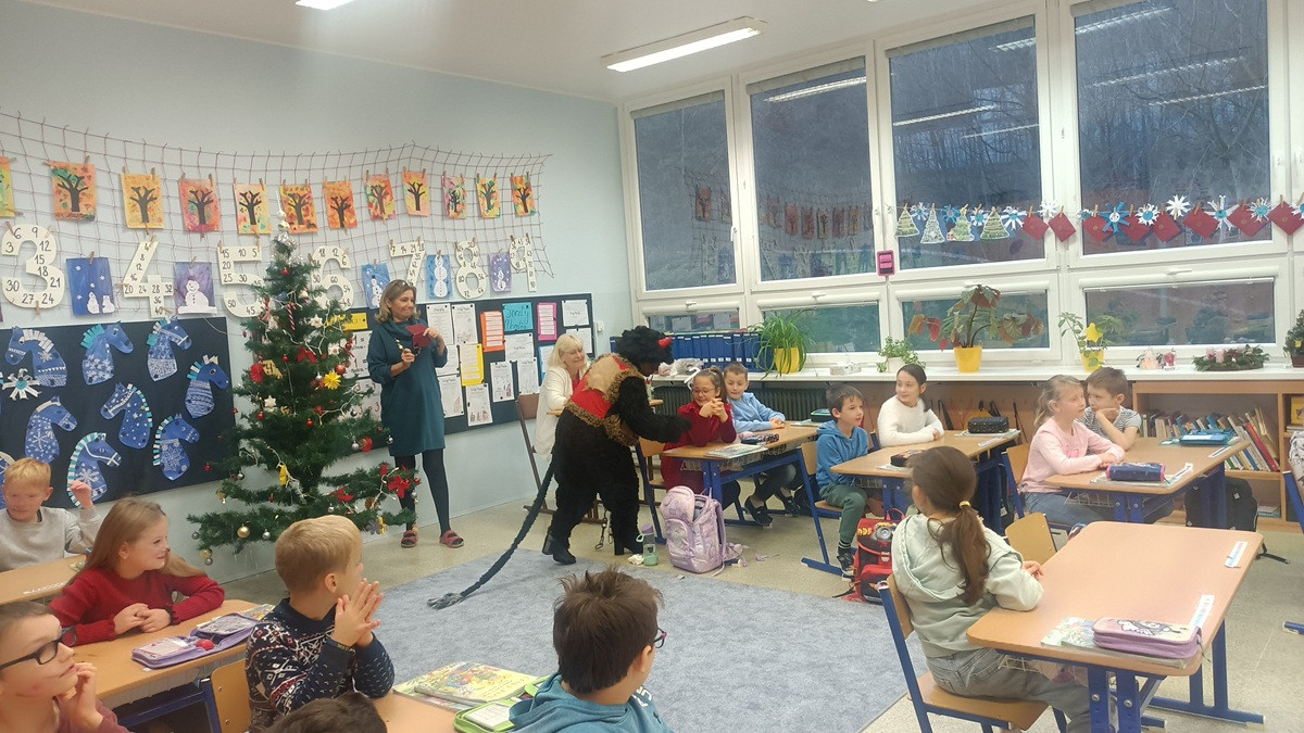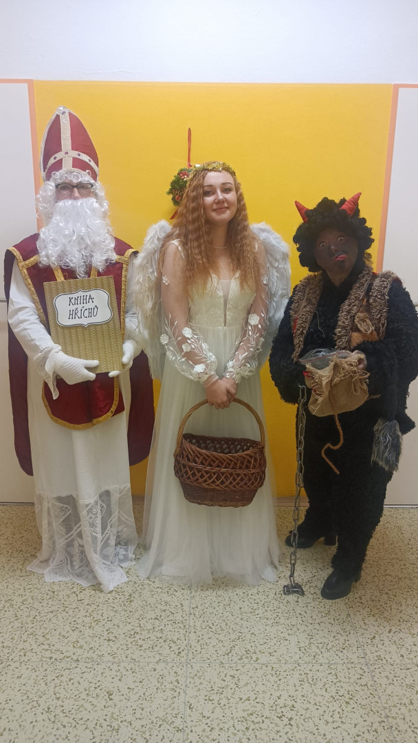 Tak jako každý rok i letos zavítal do naší školy Mikuláš se svými věrnými pomocníky – andělem a čertem. Jejich kroky je zavedly hlavně k žákům prvního stupně, kteří se na jejich příchod těšili už od rána a nemohli se dočkat.