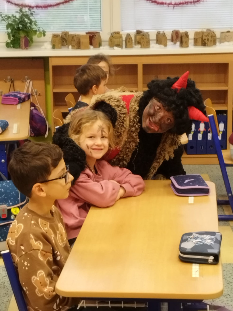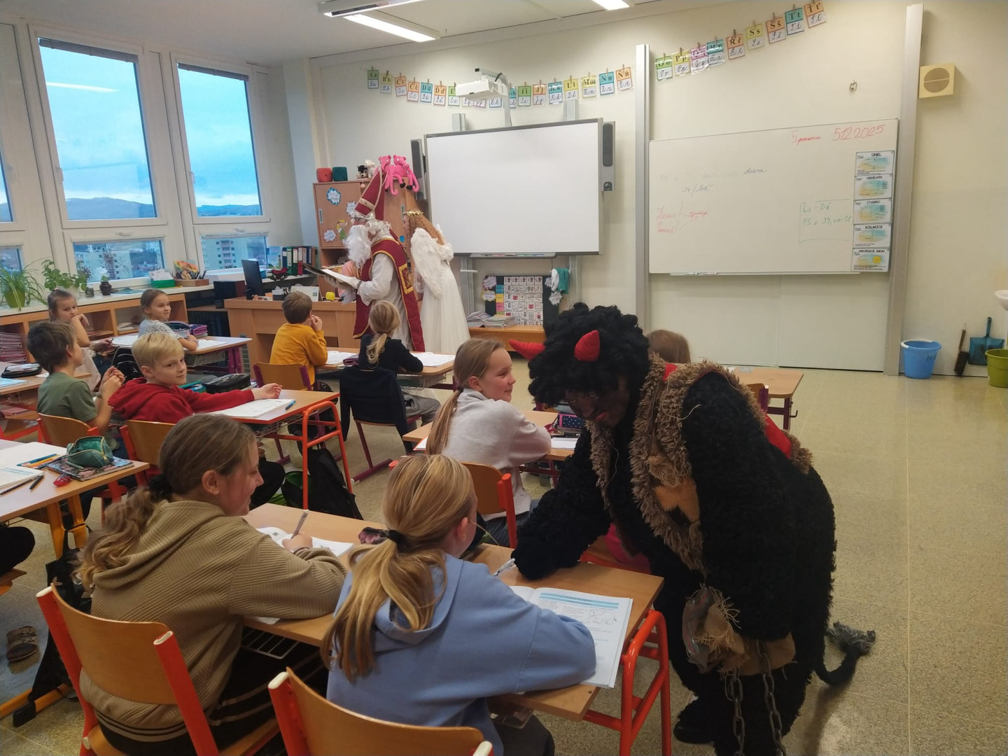 Mikuláš nahlédl do své knihy hříchů, ale kromě drobných přešlapů v ní našel také spoustu pochval. Děti si tak vyslechly nejen to, co by se mělo zlepšit, ale především to, co se jim daří. Čert samozřejmě jako vždycky nezůstal pozadu – zlobil, bručel a některým dokonce „ohodnotil“ otevřené sešity. Zatímco někdo dostal jedničku, jinému přistála na stránce pořádná kulaťoučká pětka. Prý se mu líbí víc… jenže věřte čertovi! A aby toho nebylo málo, nešetřil ani svou tradiční čertovskou čmouhou pro štěstí.