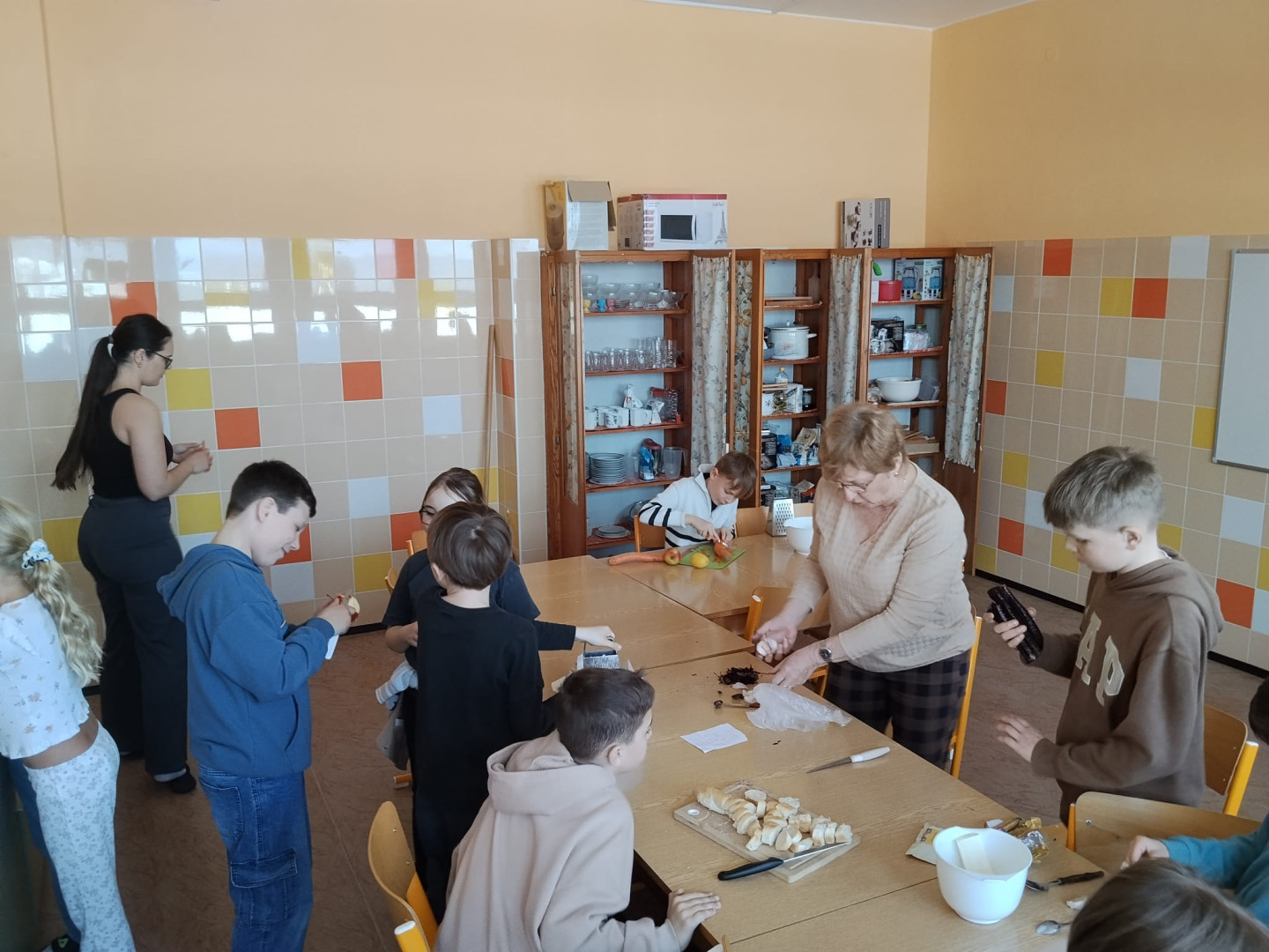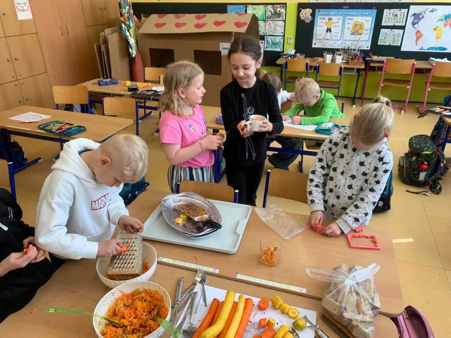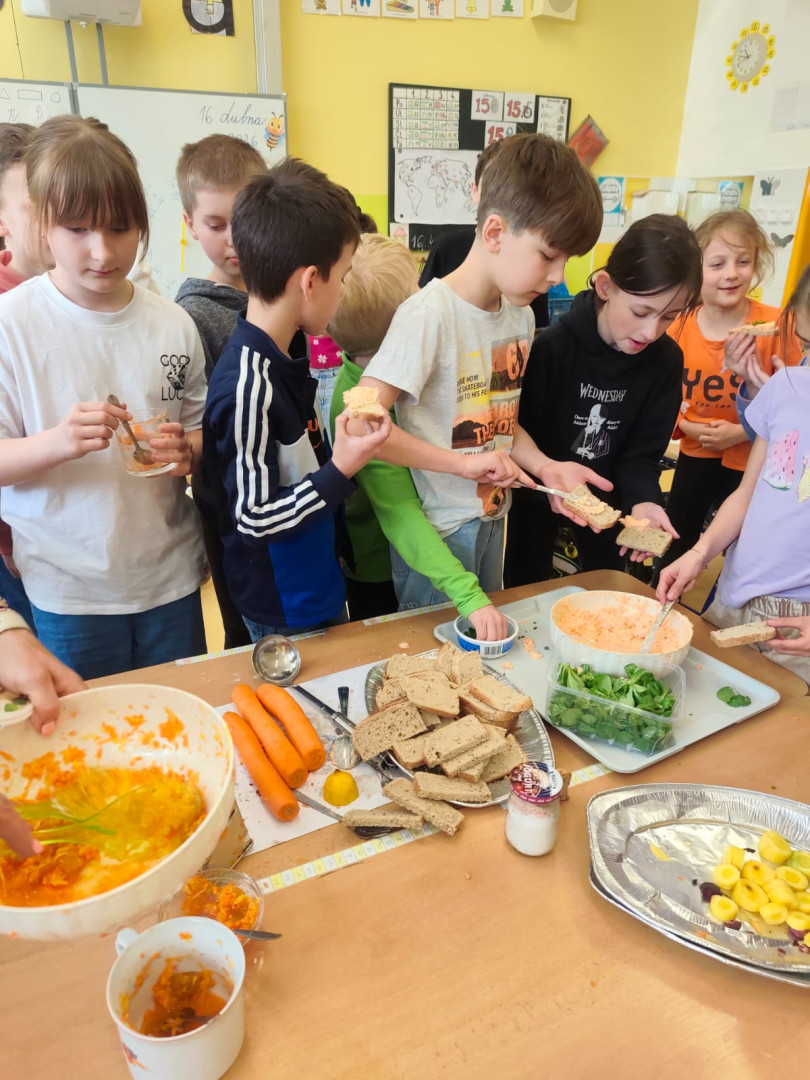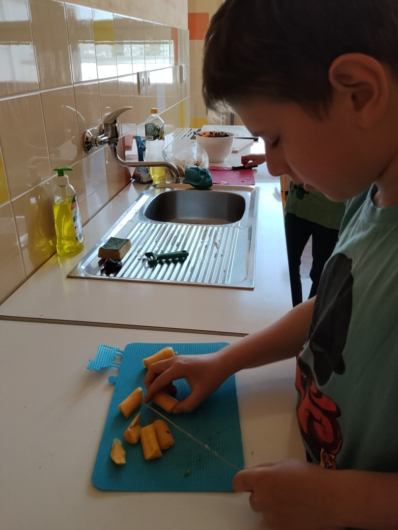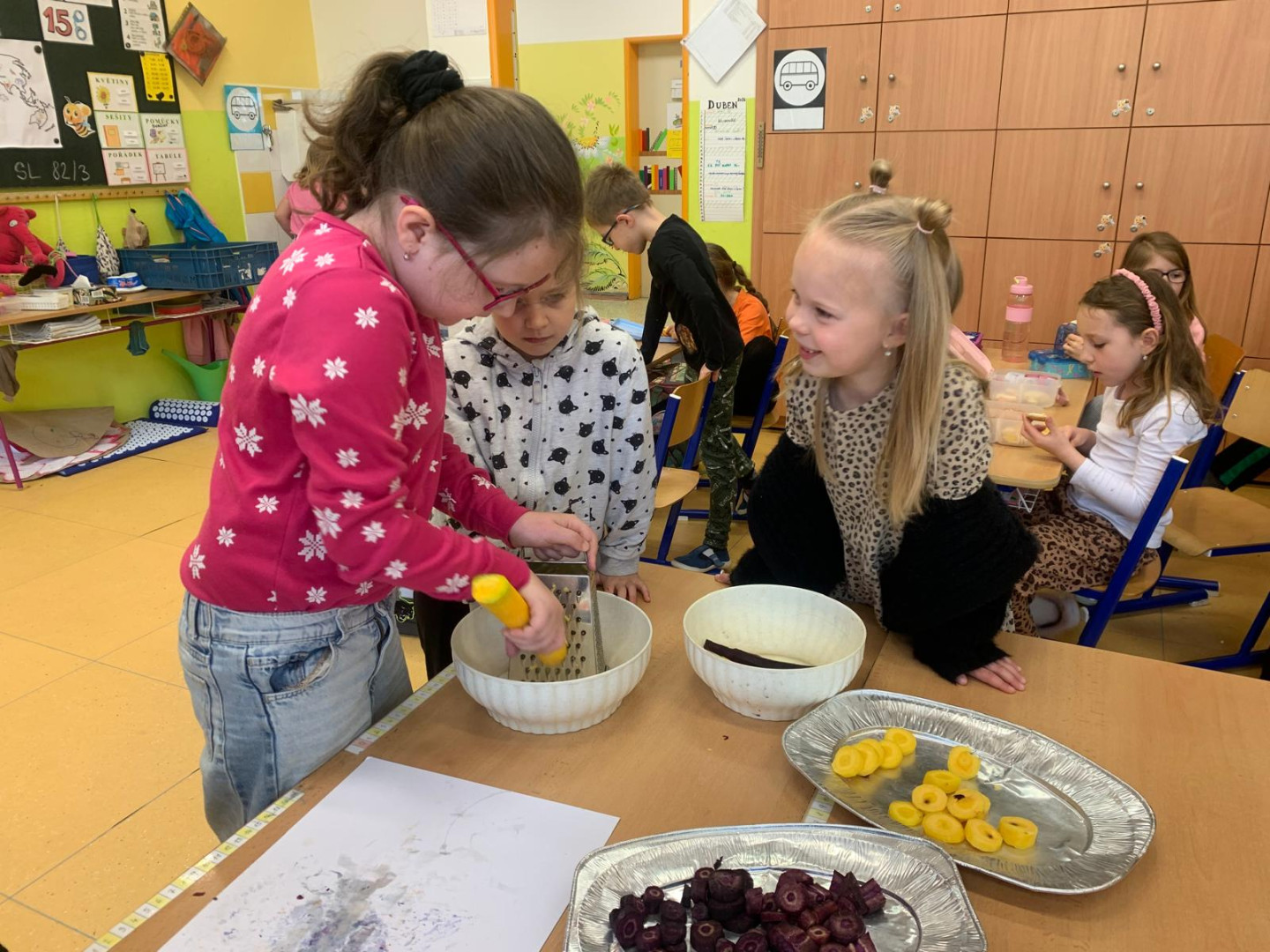 Největší radost však přinesla praktická část. Ochutnávali jsme různé druhy mrkve a pečlivě hodnotili, která je nejsladší, nejkřupavější a která by „vyhrála mrkvového Oscara“. Poté si žáci sami vyzkoušeli, co všechno se z mrkve dá připravit. Pekly se voňavé mrkvové hranolky, vznikaly chutné pomazánky i svěží saláty s jablky nebo ananasem. Někteří žáci byli překvapeni, že mrkev chutná výborně i jinak než jen v polévce od babičky.