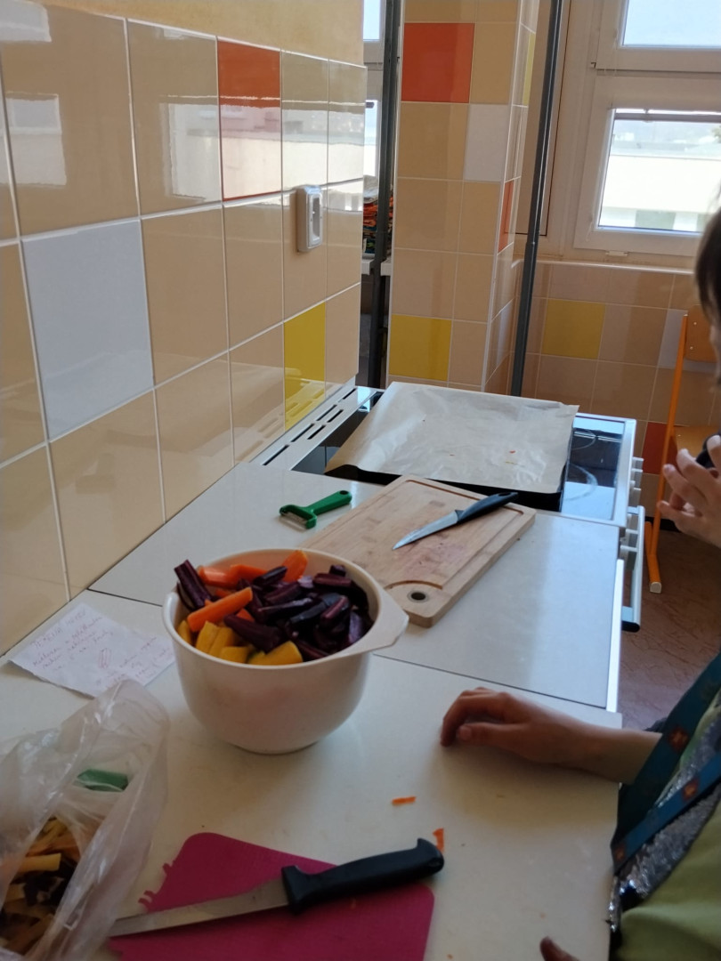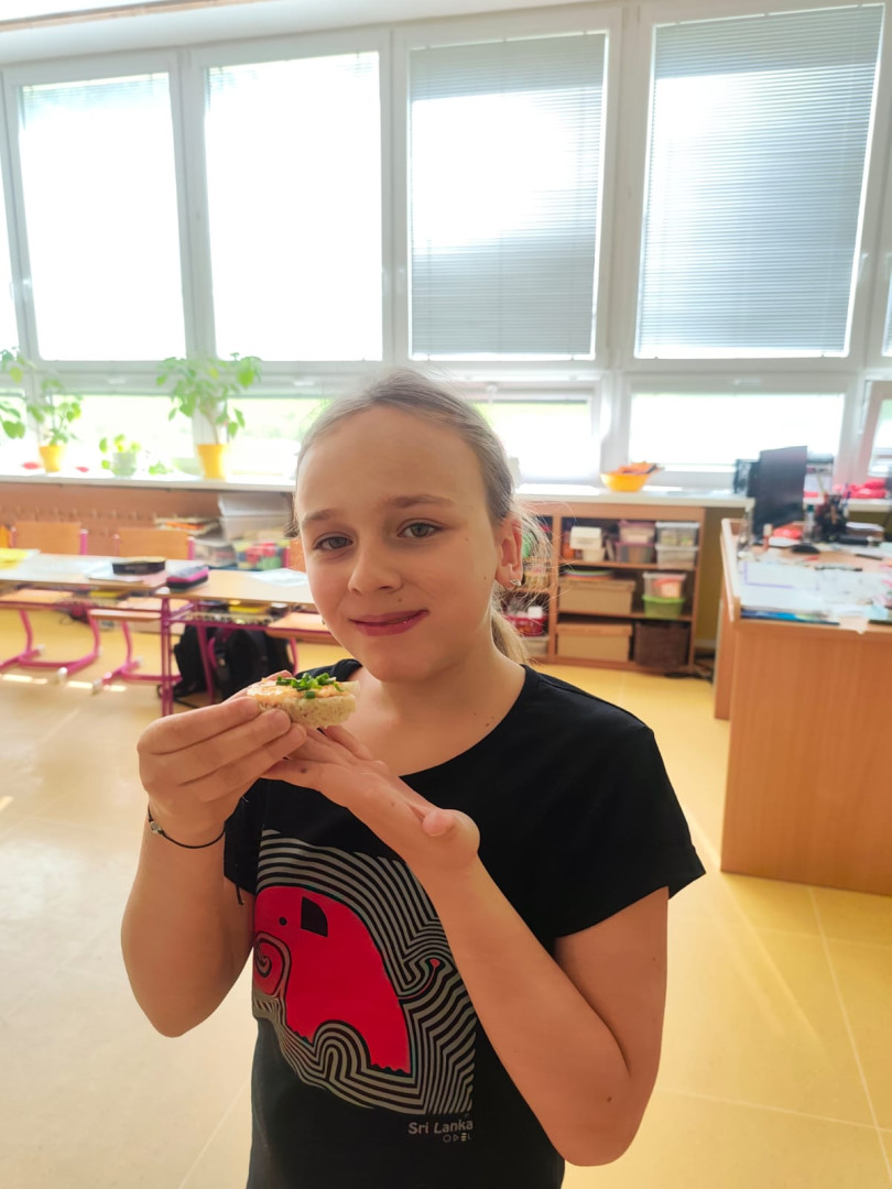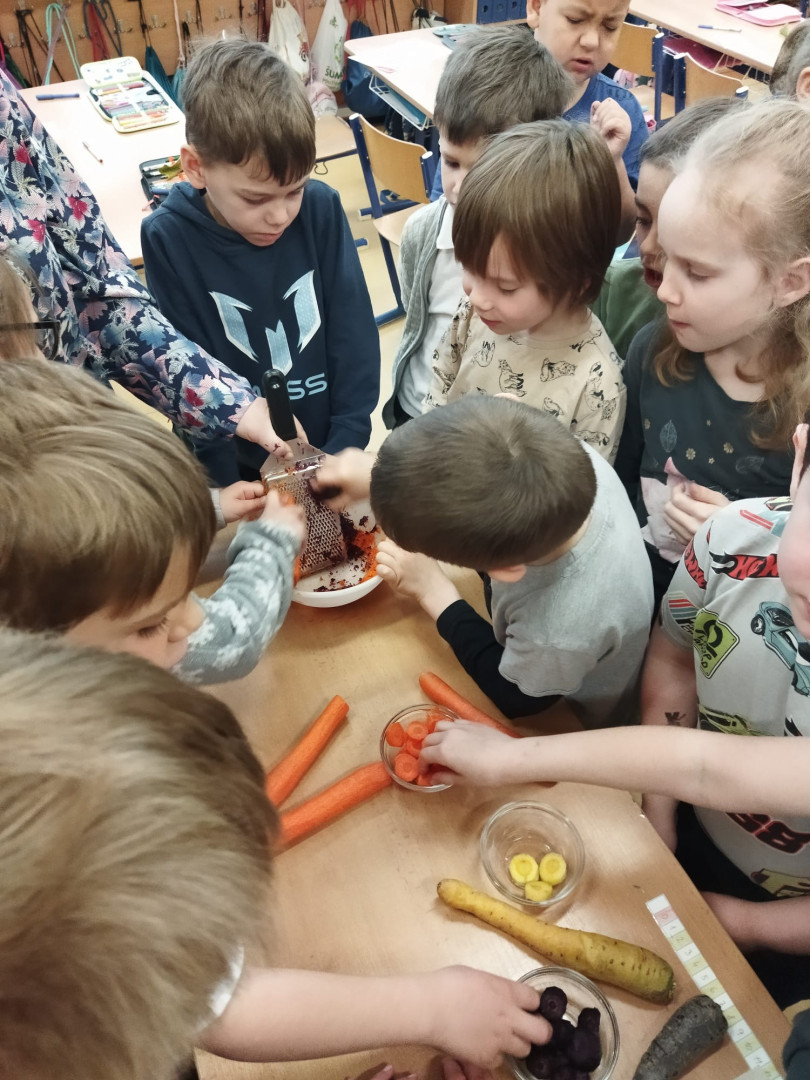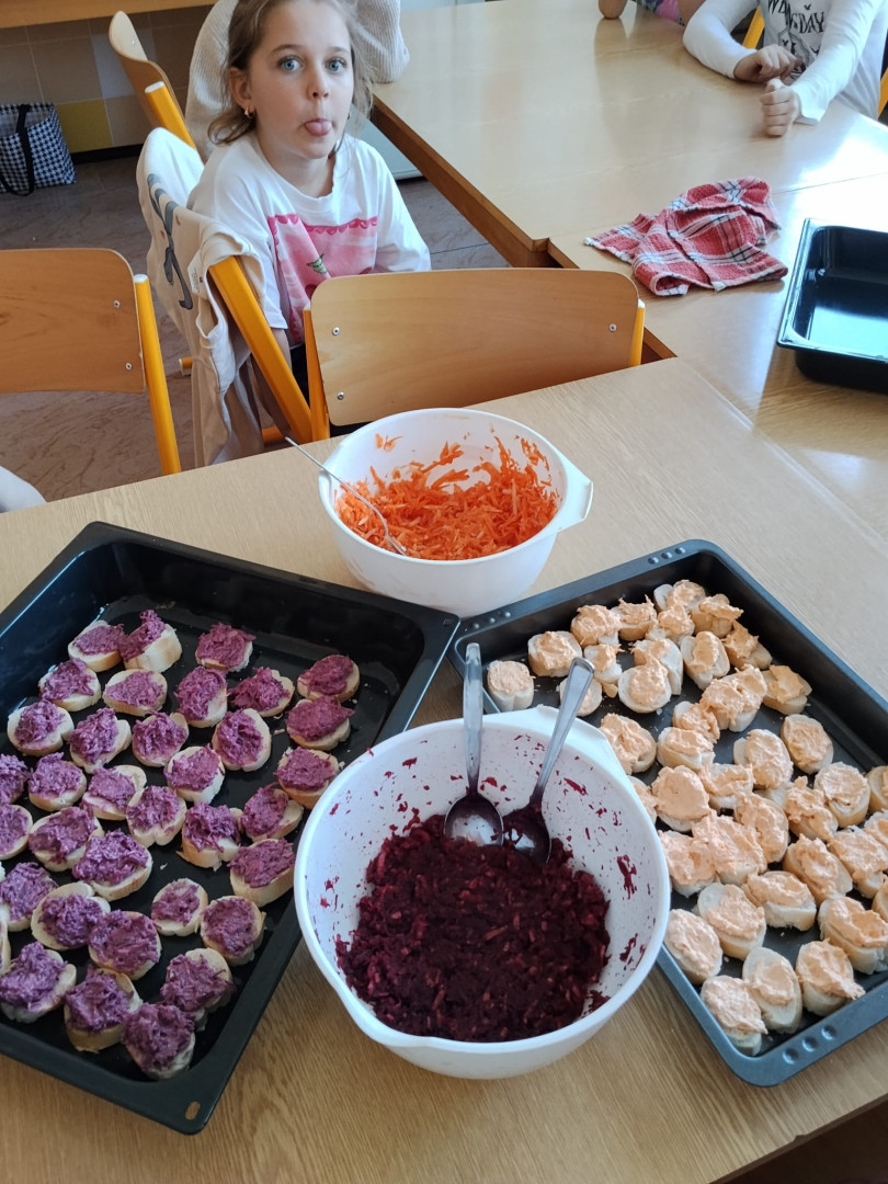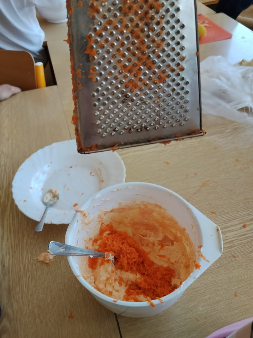 Největší radost však přinesla praktická část. Ochutnávali jsme různé druhy mrkve a pečlivě hodnotili, která je nejsladší, nejkřupavější a která by „vyhrála mrkvového Oscara“. Poté si žáci sami vyzkoušeli, co všechno se z mrkve dá připravit. Pekly se voňavé mrkvové hranolky, vznikaly chutné pomazánky i svěží saláty s jablky nebo ananasem. Někteří žáci byli překvapeni, že mrkev chutná výborně i jinak než jen v polévce od babičky.