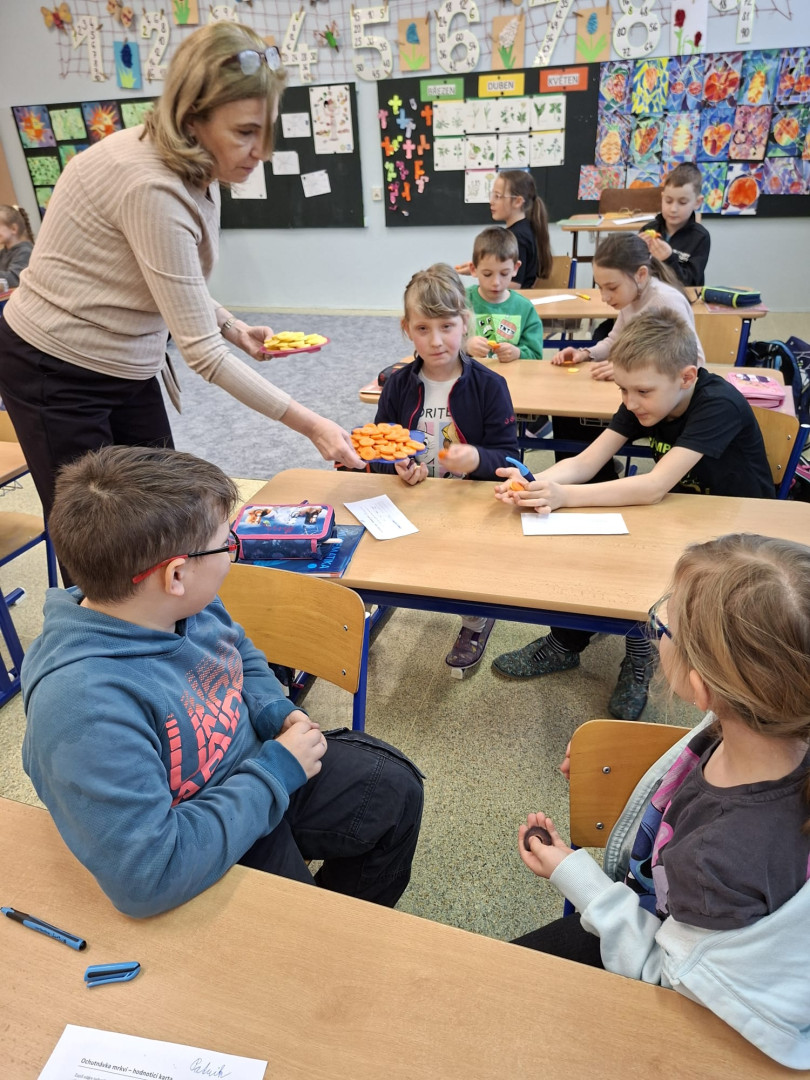 Žáci se dozvěděli, odkud mrkev pochází, jak se pěstuje a proč je pro naše tělo tak prospěšná. Překvapením pro mnohé bylo, že mrkev nemusí být jen oranžová, ale může mít i žlutou nebo dokonce fialovou barvu.