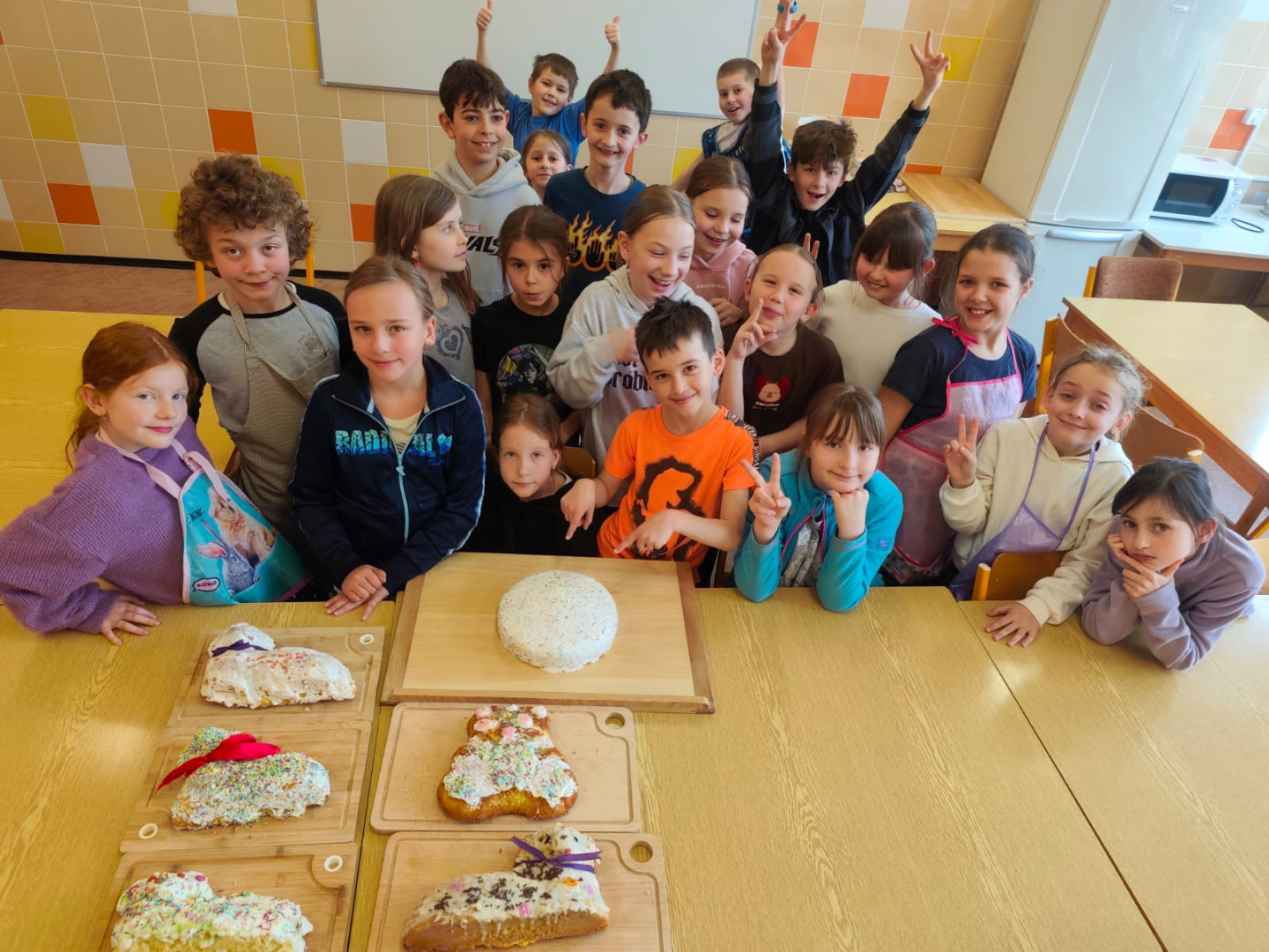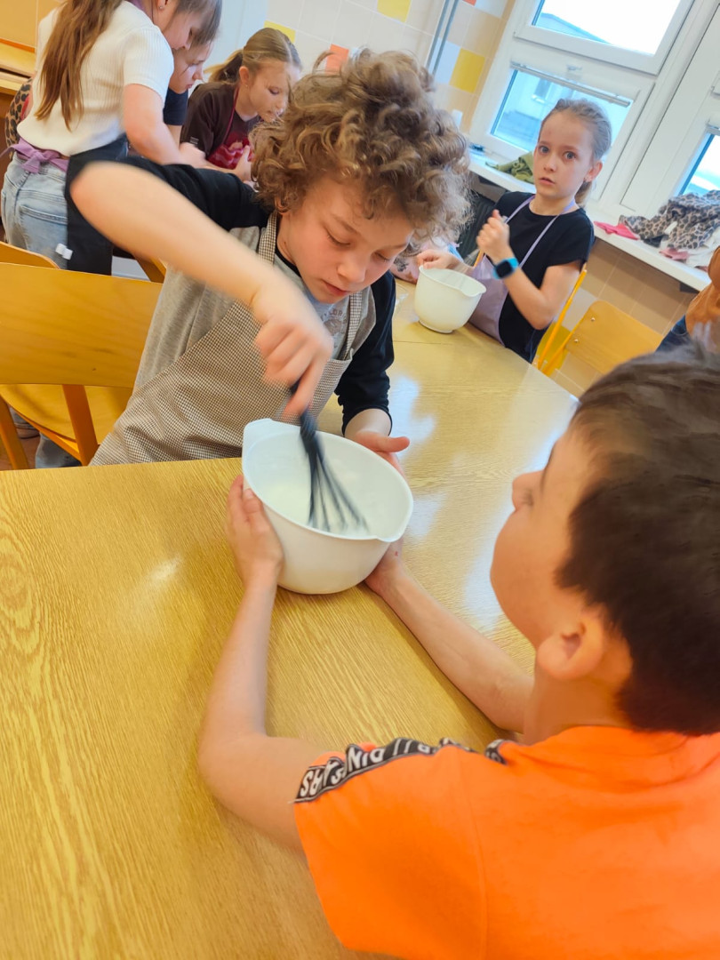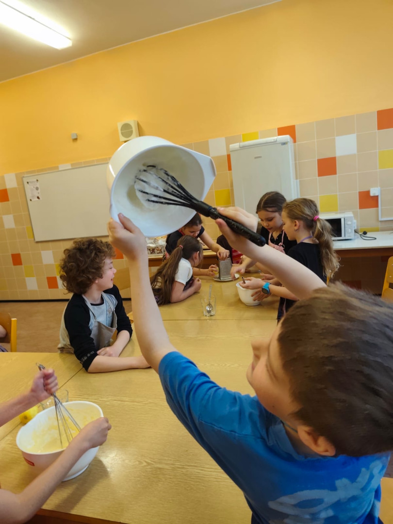 Tento rok jsme naše velikonoční tvoření přenesli do školní kuchyňky. Děti si chtěly vyzkoušet, jestli zvládnou upéct velikonočního beránka, a tak jsme to propojili s finanční gramotností.