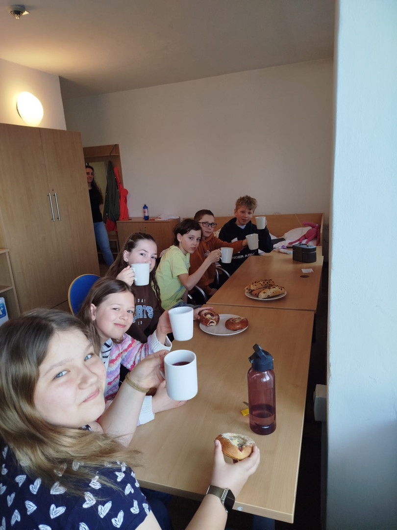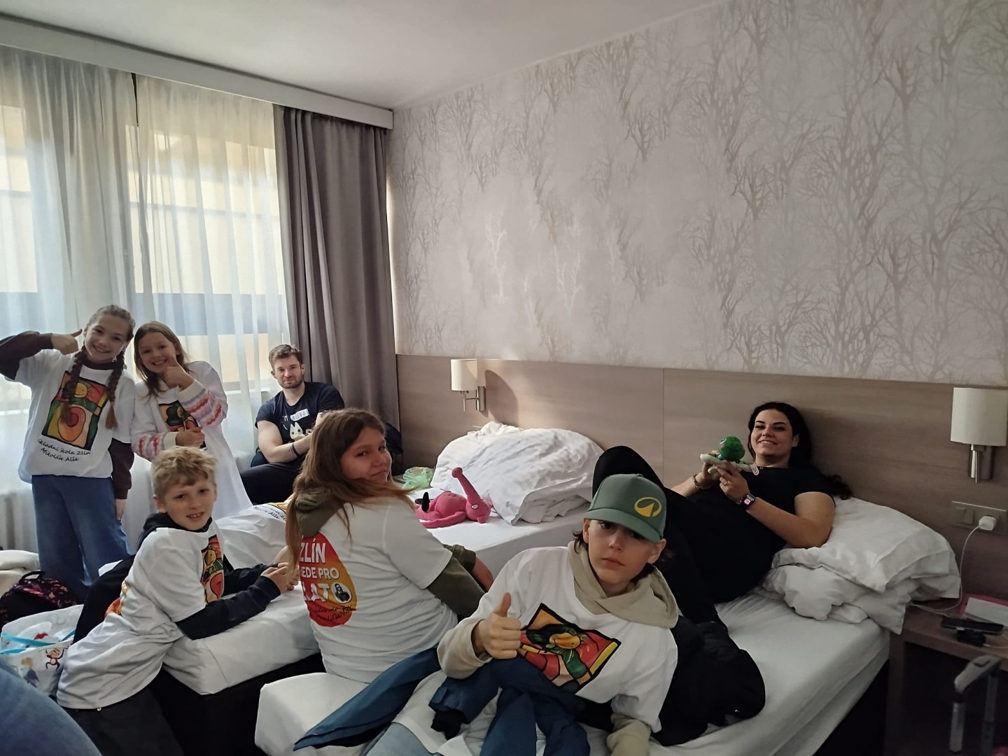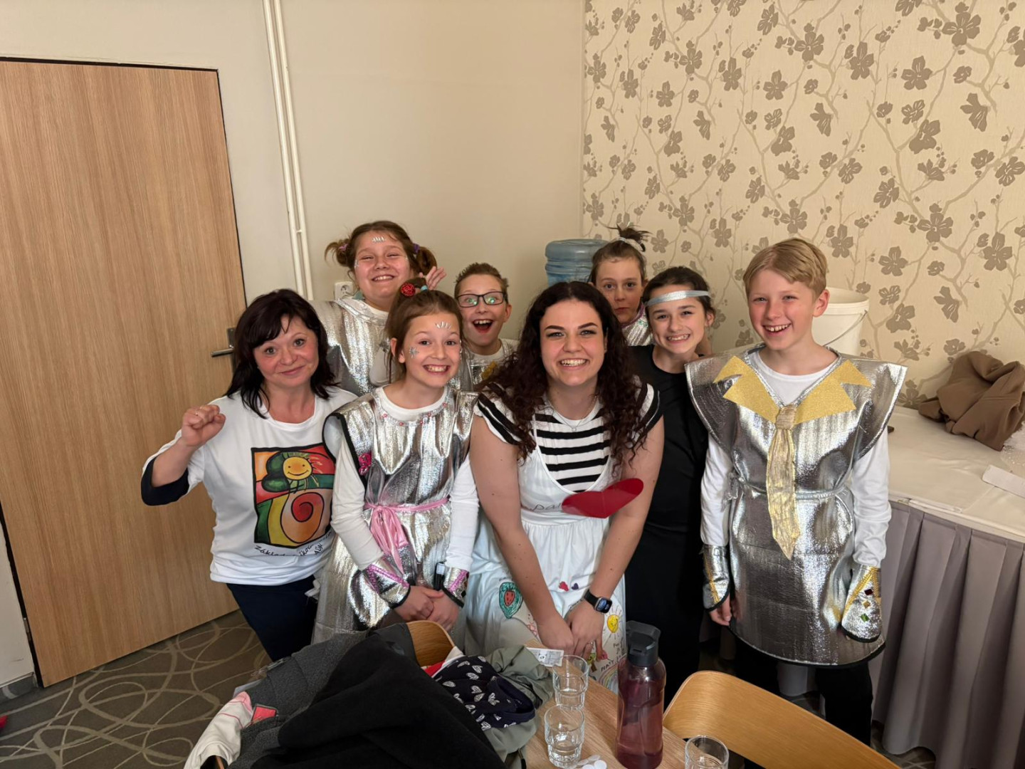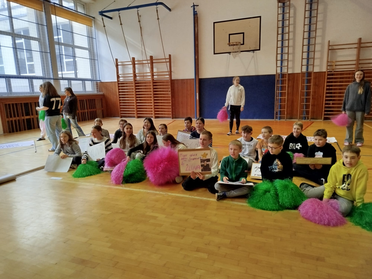 Po zkoušce na podiu následoval oběd a pak jsme s radostí přivítali autobus plný fanoušků z naší školy. Paní ředitelka nám popřála hodně štěstí, učitelé pomohli s přípravou zázemí a spolužáci s rodiči vytvořili skvělou podporu.