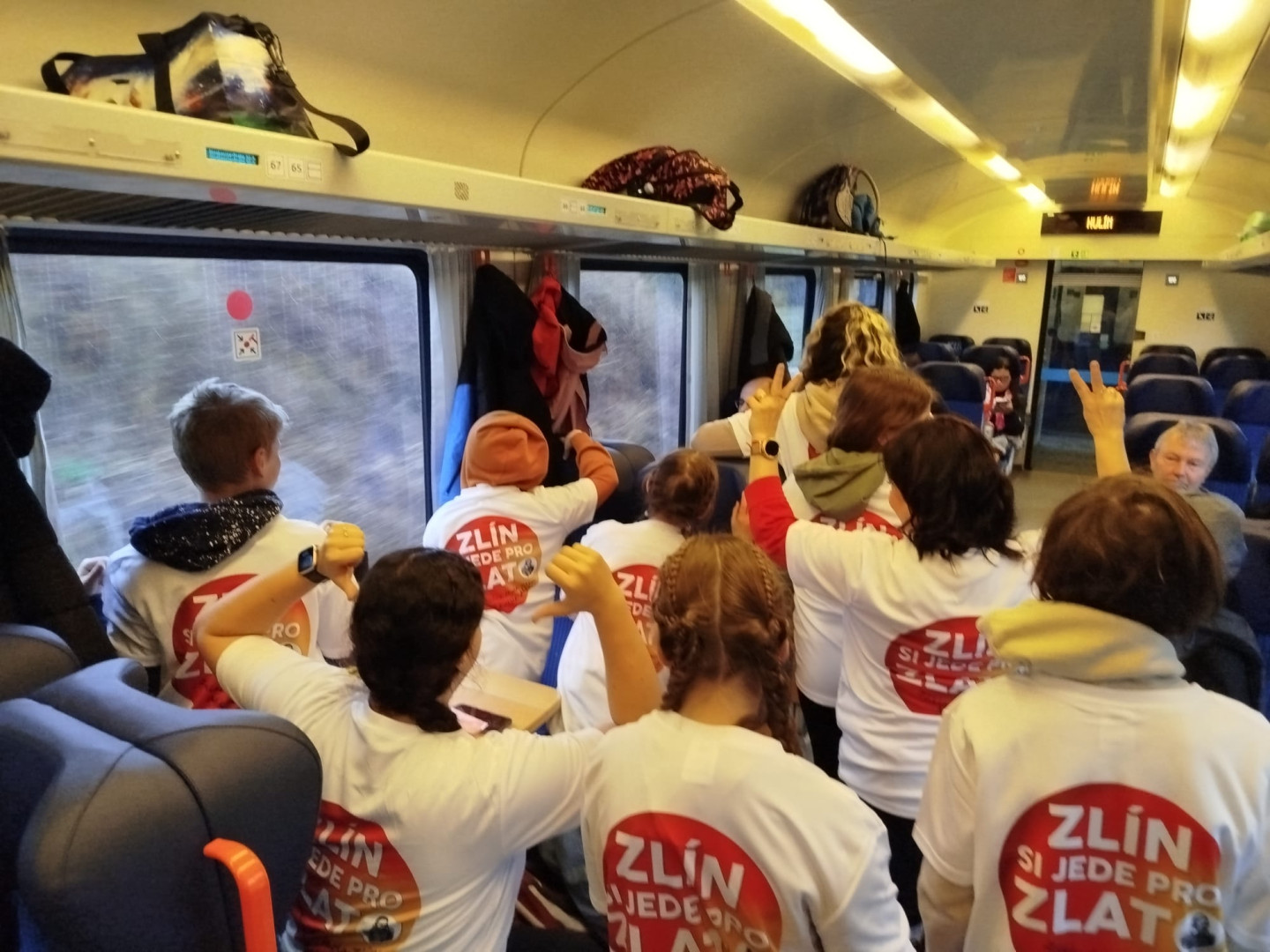 Atmosféra od brzkého rána byla plná nadšení, což postřehli i cestující na nástupišti v Otrokovicích i ve vlaku do Prahy a ochotně nám pomohli se zavazadly naplněnými kostýmy a rekvizitami.