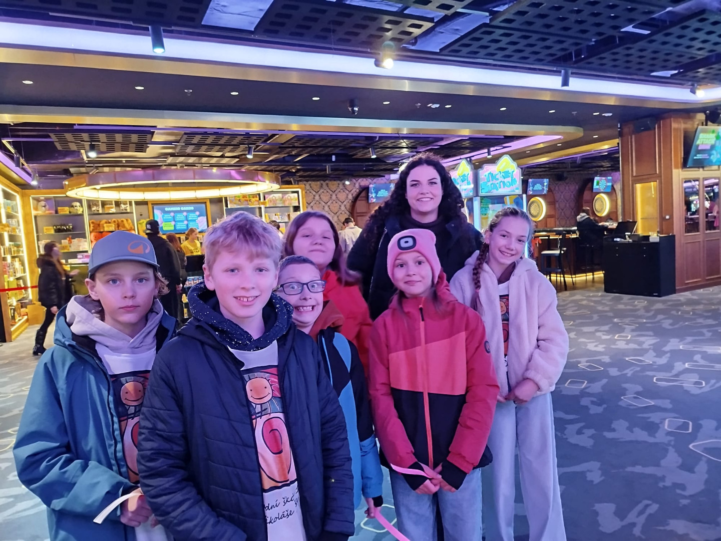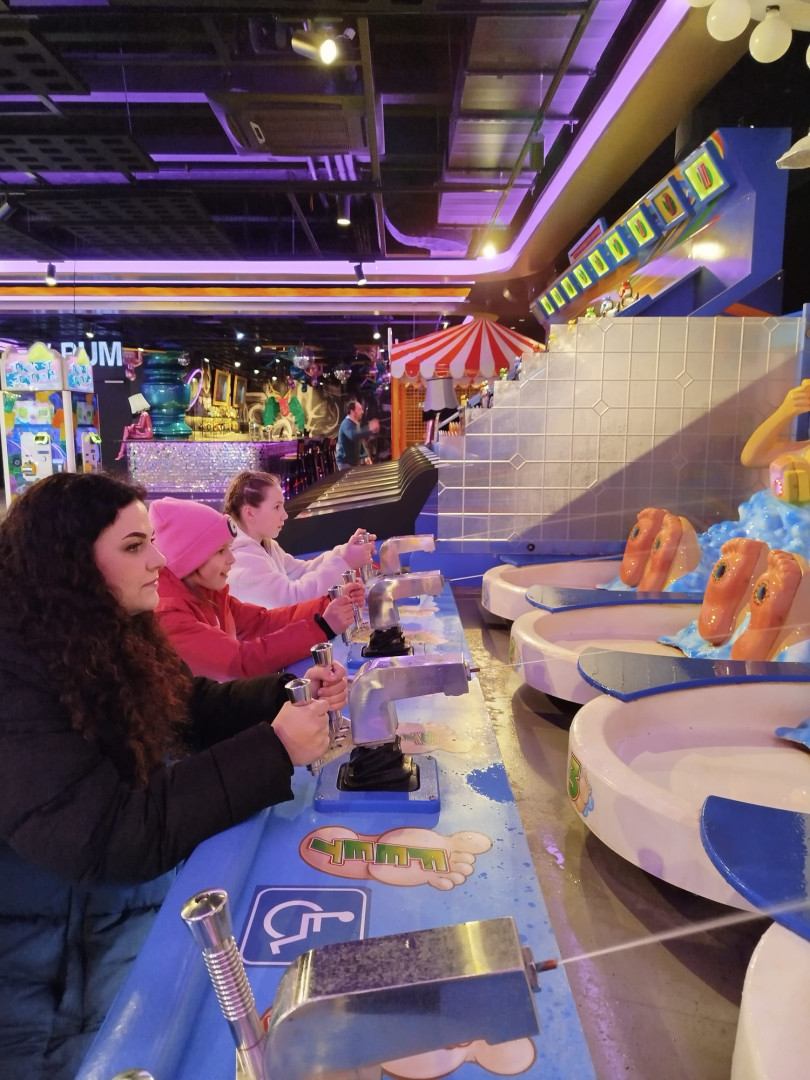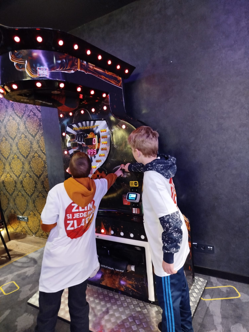 Počasí bylo sice chladné, ale o to hřejivější bylo setkání s paní učitelkou, která za námi dorazila s milým překvapením. Nepřijala nabídku pana prezidenta, ale odjela s námi do Máje na Národní třídě. Jako v Las Vegas jsme si připadali, když jsme navštívili zábavné centrum Levels s množstvím arkádových her z celého světa.