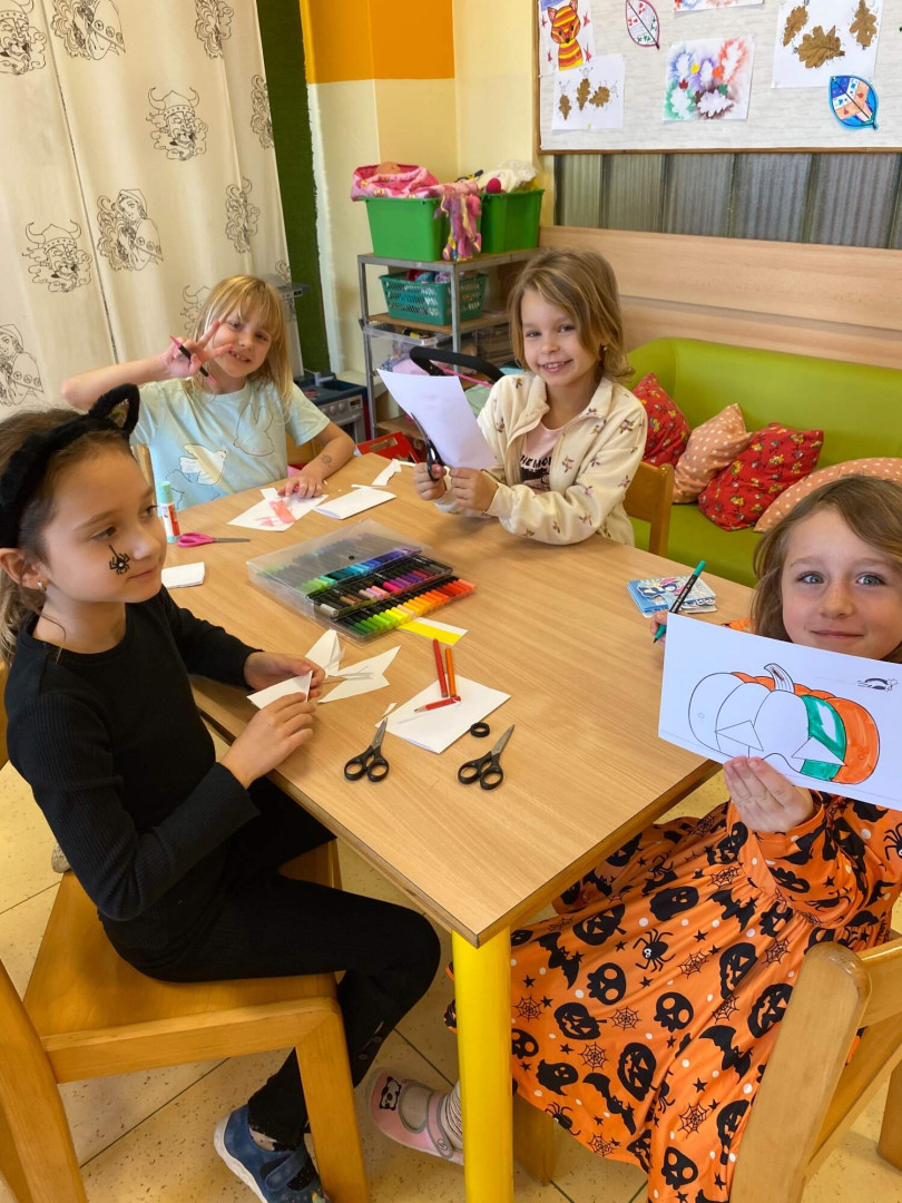 V říjnu jsme si v družině užili opravdu pestrý program. Týden zdraví byl zaměřený zdravé stravě a sportovním aktivitám. Den stromů jsme oslavili vycházkou do přírody a povídali si o ochraně životního prostředí. Děti nejvíc bavily hry s přírodninami. Na závěr měsíce jsme si užili strašidelný Halloween plný masek, her a smíchu.
