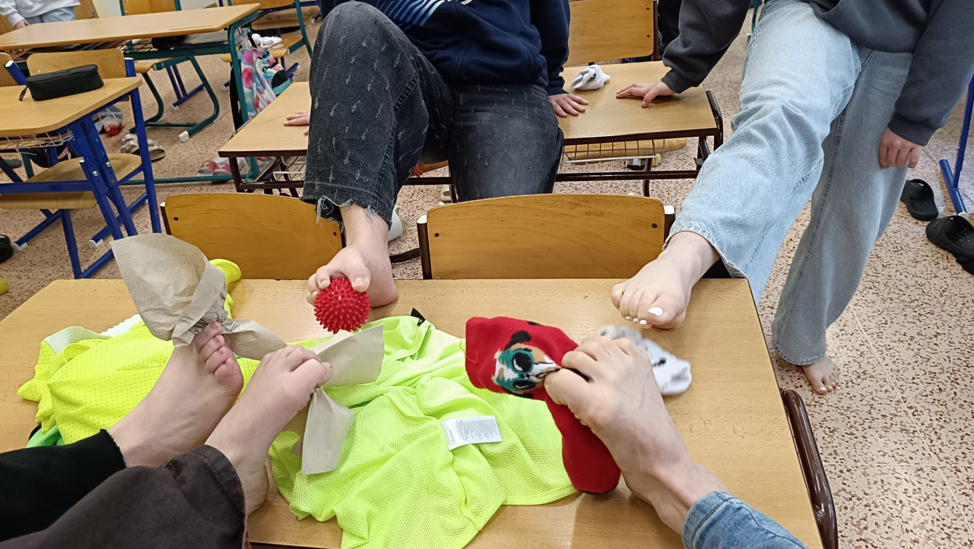 V přírodopisu v 8.A probíráme anatomii lidského těla - kosterní a svalovou soustavu. Minulá hodina byla aktivní a zaměřená na naše chodidla. Ty nás budou nosit celý život, a proto si zaslouží speciální péči.