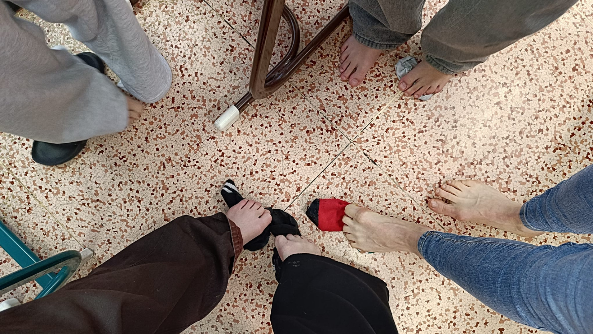 Zvedali jsme předměty ze země, procházeli se bosky, vyzouvali si ponožku jednou nohou...