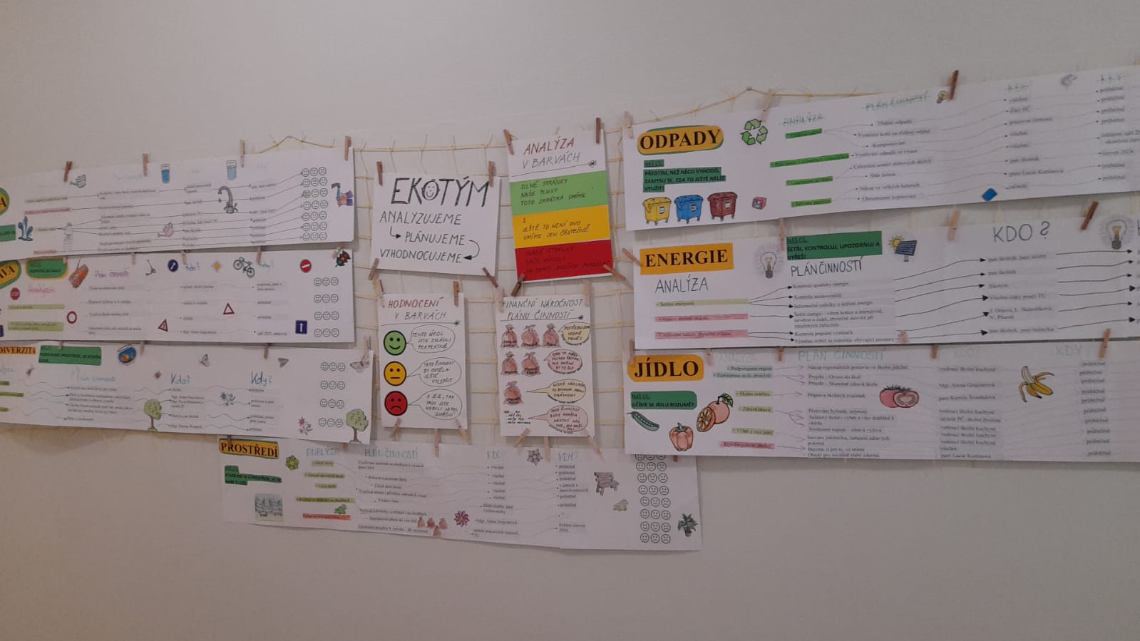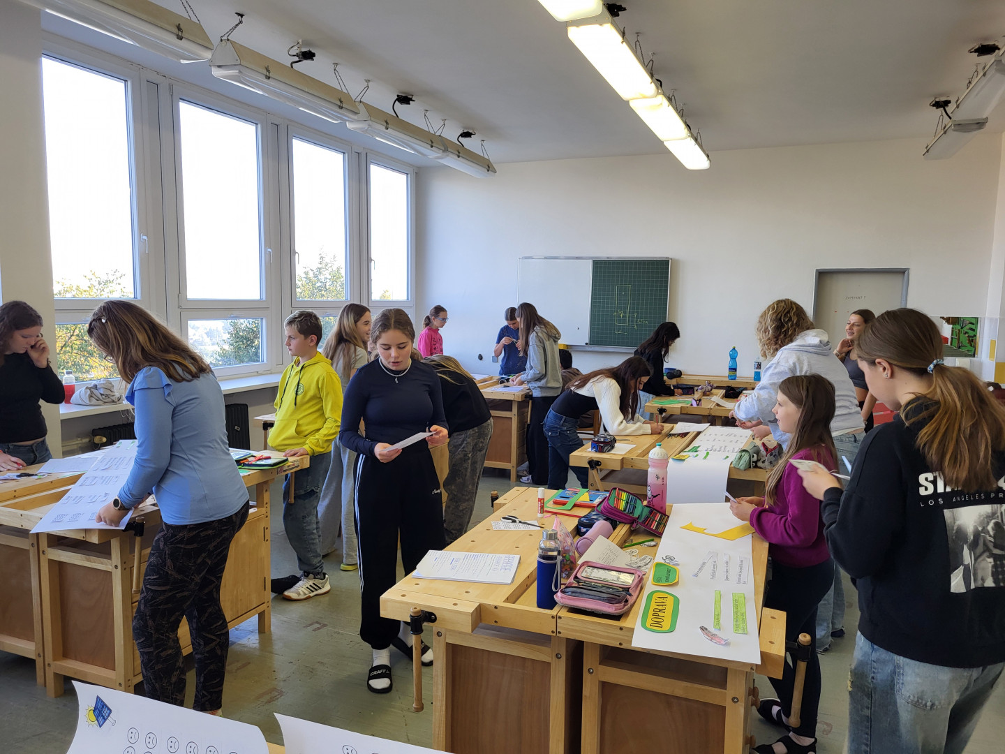 V pátek 3. října proběhl u nás na škole projektový den Ekotýmu pro žáky 5. - 9. ročníku. Společně jsme se sešli 1. hodinu, kde se žáci rozdělili do skupinek, ve kterých během projektu pracovali. Cílem dnešního projektu bylo vytvoření grafického zpracování plánu činností pro školní rok 2025/2026. Členové Ekotýmu spolupracovali v sedmi skupinkách, kde každá skupina vypracovávala jednu oblast Ekoškoly. Žáci byli velmi snaživí a podařilo se jim celý plán činností vytvořit během tří vyučovacích hodin.