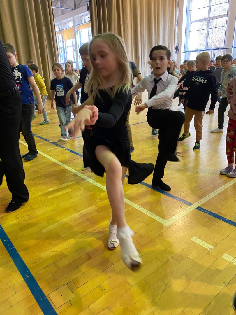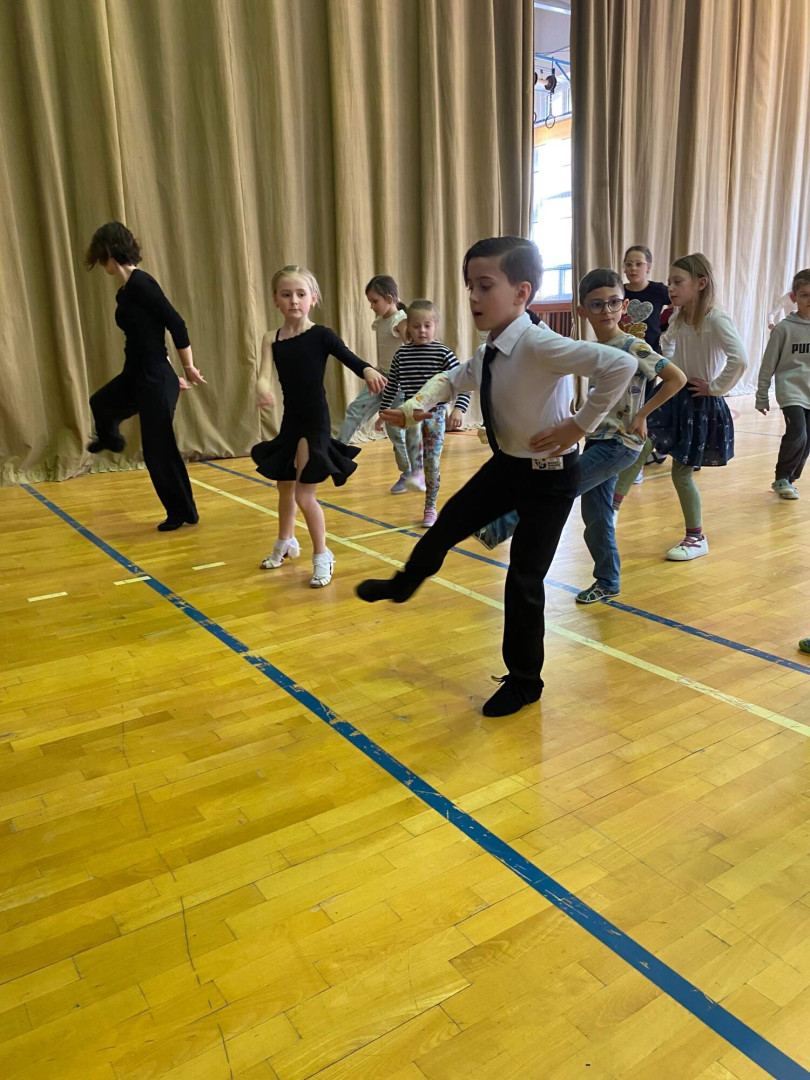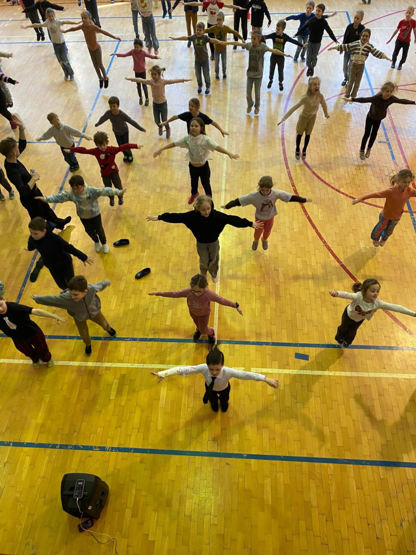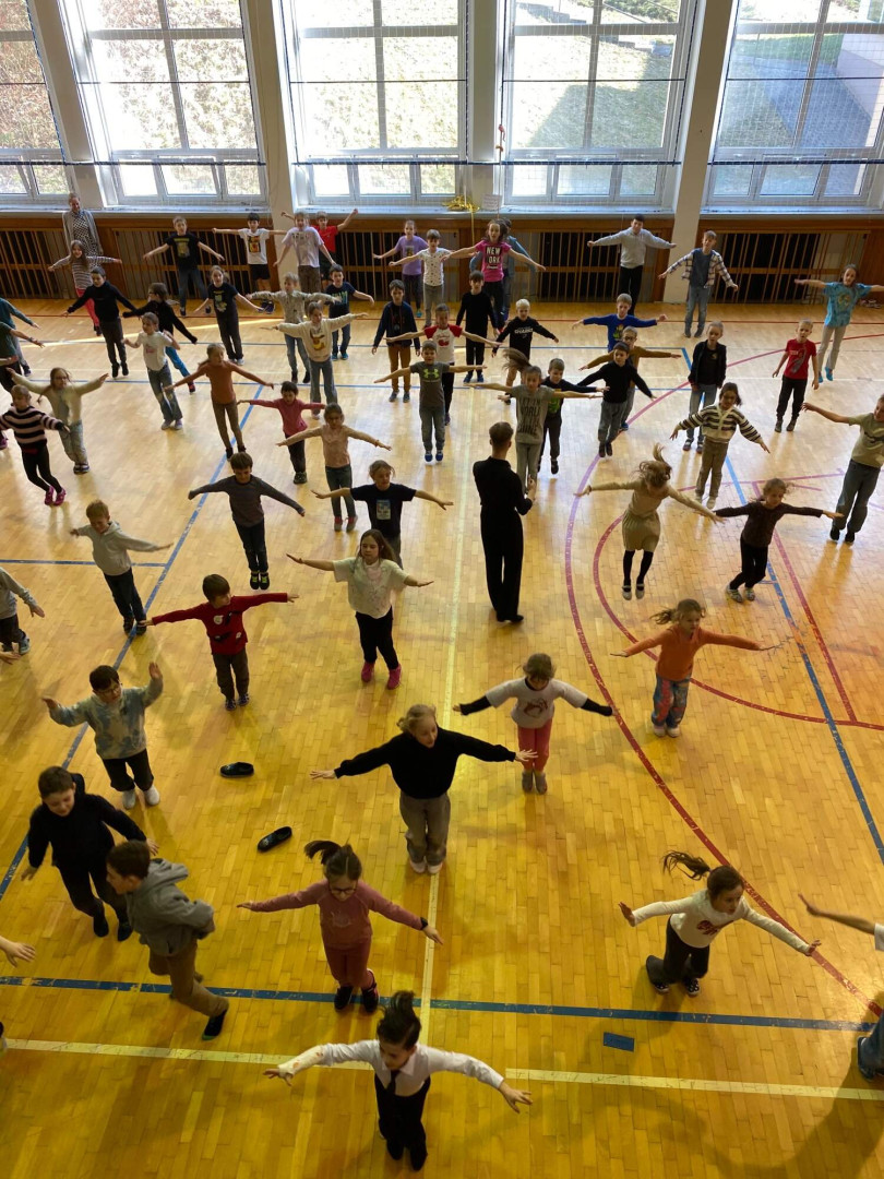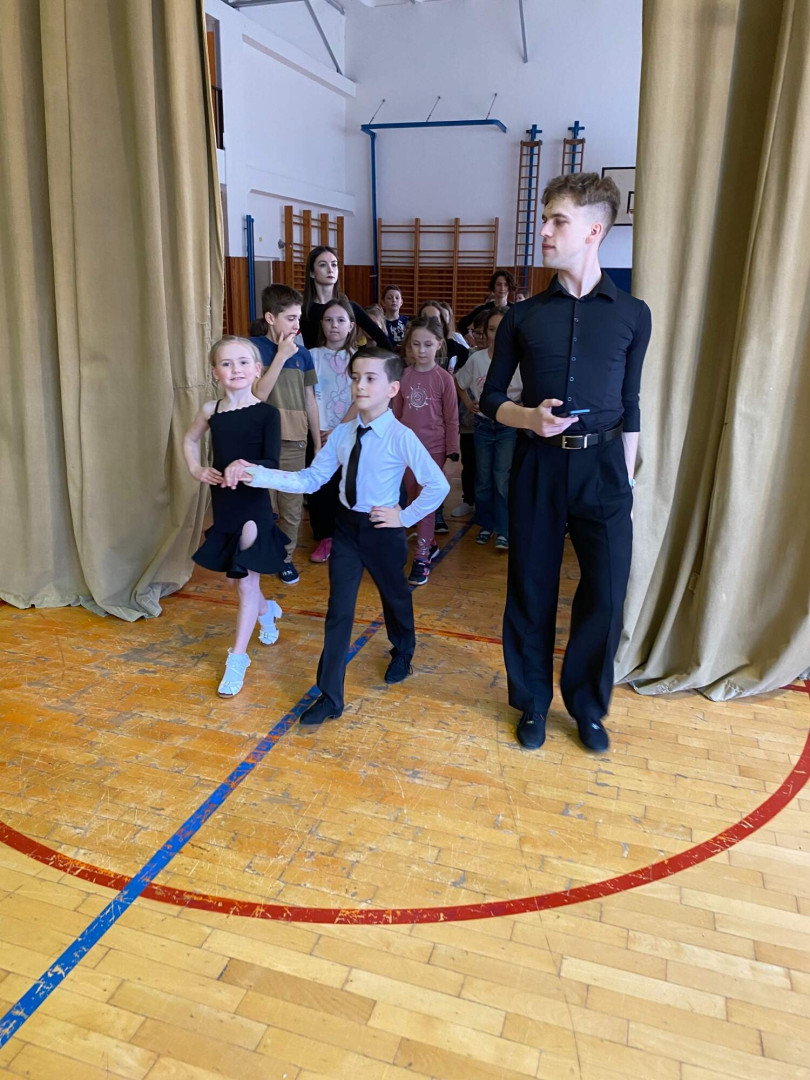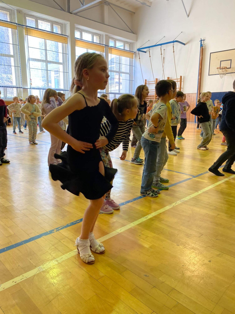 Všechny děti se s nadšením zapojily. Nikdo nezůstal sedět – naopak, celá tělocvična byla plná pohybu, smíchu a dobré nálady. Bylo až překvapivé, jak moc děti celý program bavil a jak se přirozeně nechaly vtáhnout do rytmů samby, chachy, jivu, waltzu a polky. Třešničkou na dortu byla ukázka všech pěti tanců od malých profi tanečníků.