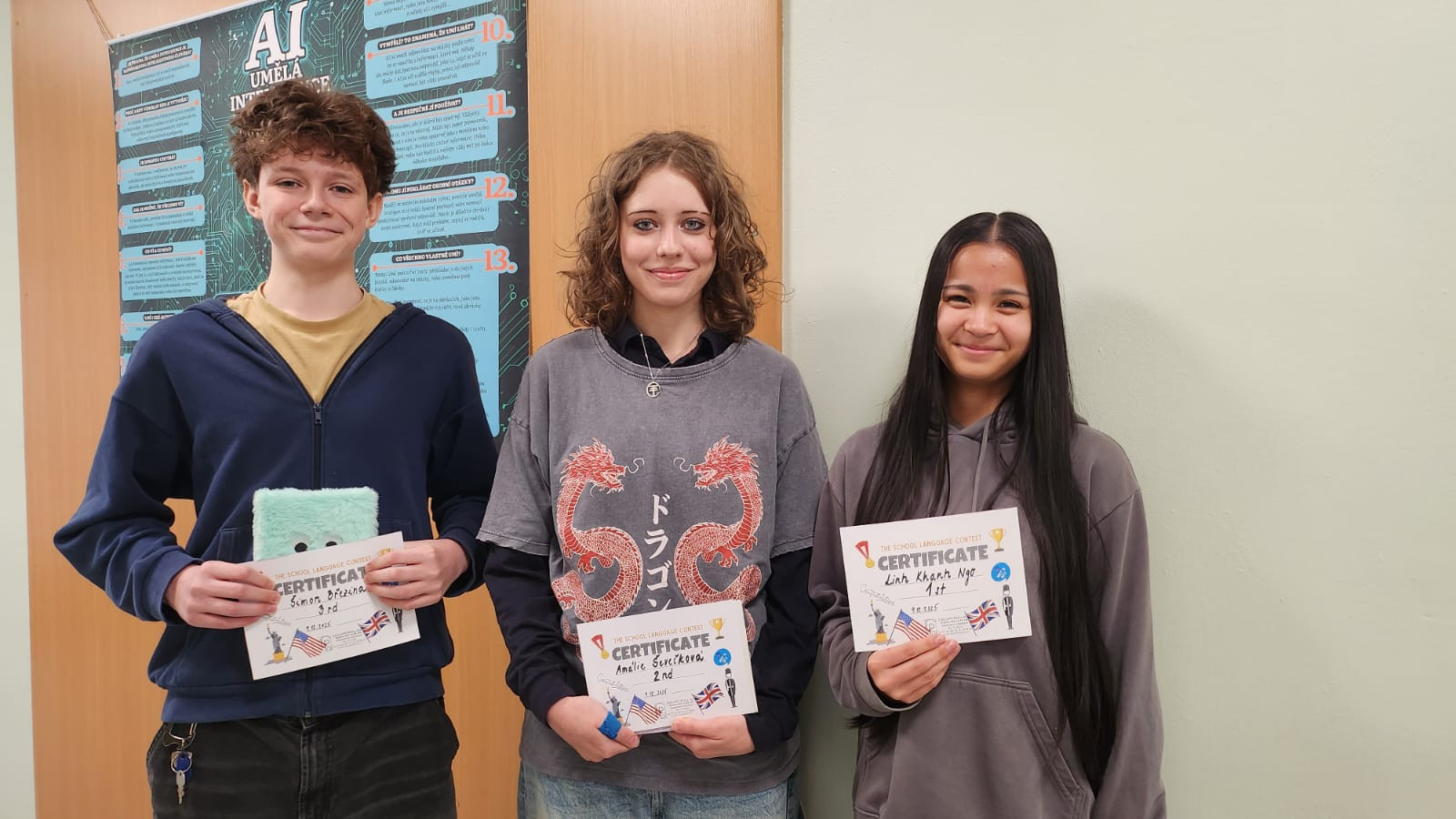 V písemné části si soutěžící ověřili, jak jsou schopni zvládnout čtení s porozuměním a orientovat se v textu. V ústní části žáci konverzovali na různá témata, popisovali vylosovaný obrázek a vytvářeli příběh. Nejlepší z nich budou ve své kategorii naši školu reprezentovat v okresních kolech, která proběhnou v únoru 2026.