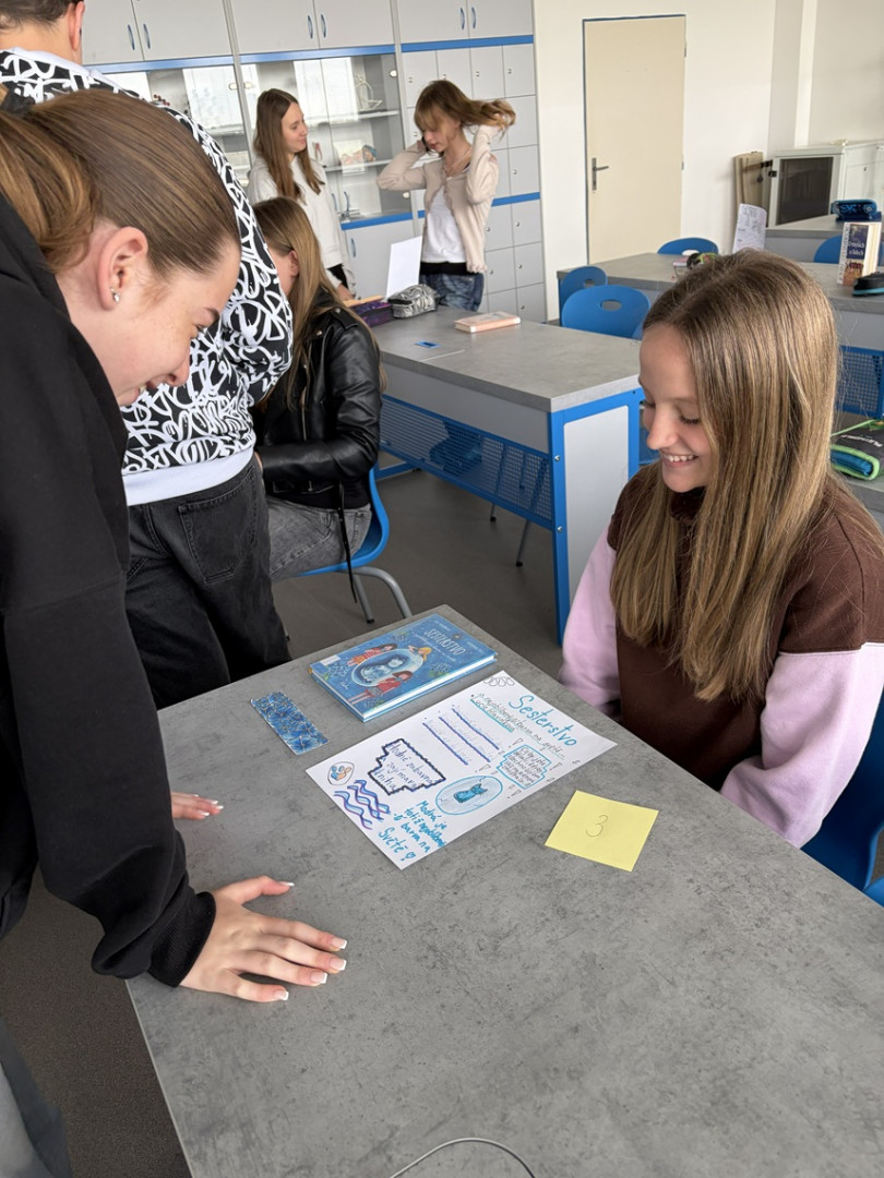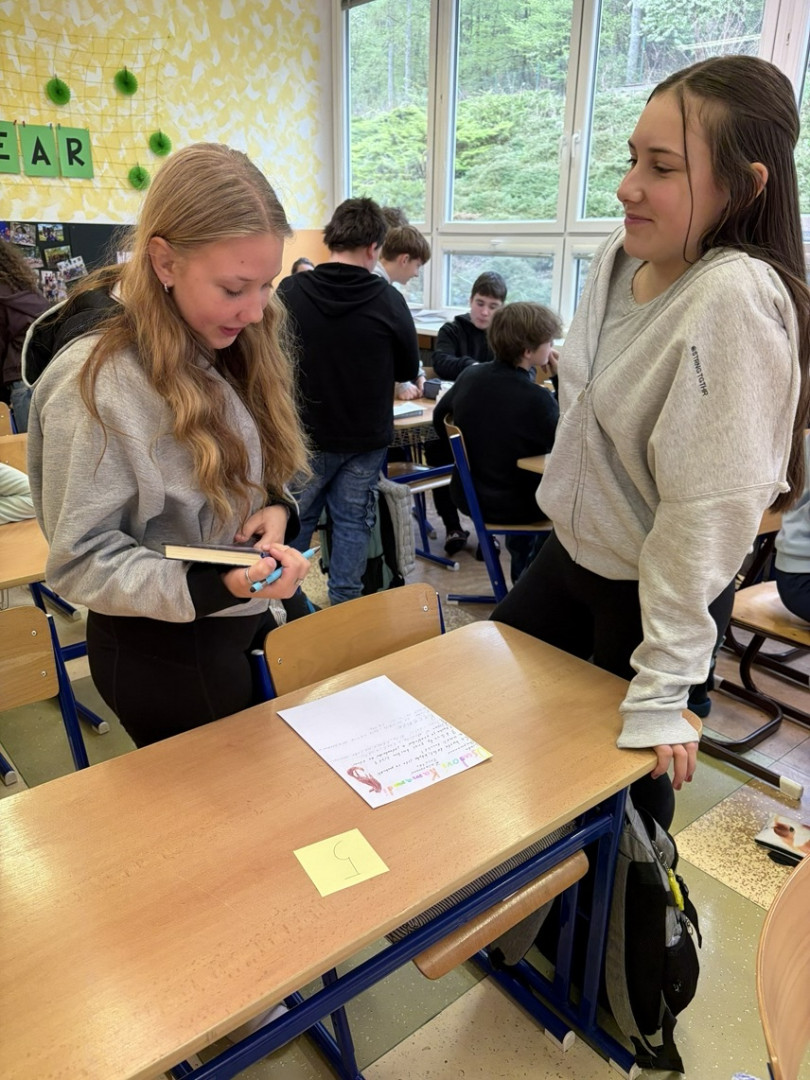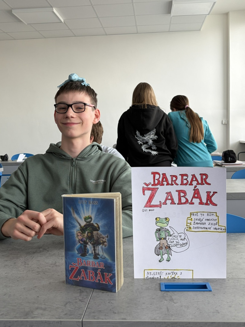 Žáci 7. ročníku si v rámci aktivity „Knižní market“ vyzkoušeli roli kreativních prodejců i náročných zákazníků. Jejich úkolem bylo přesvědčit ostatní, že právě jejich oblíbená kniha stojí za přečtení – neplatilo se však penězi, ale pozorností a zájmem spolužáků. Žáci si pro tyto účely vytvořili vlastní prodejní stánky s plakáty, na kterých prezentovali stručné důvody k četbě i své osobní recenze.