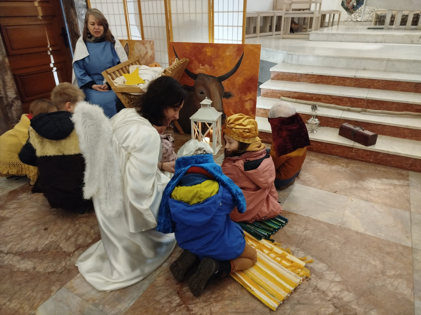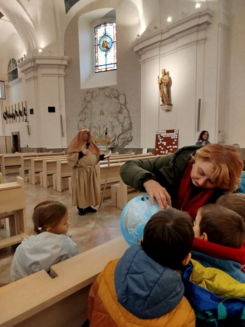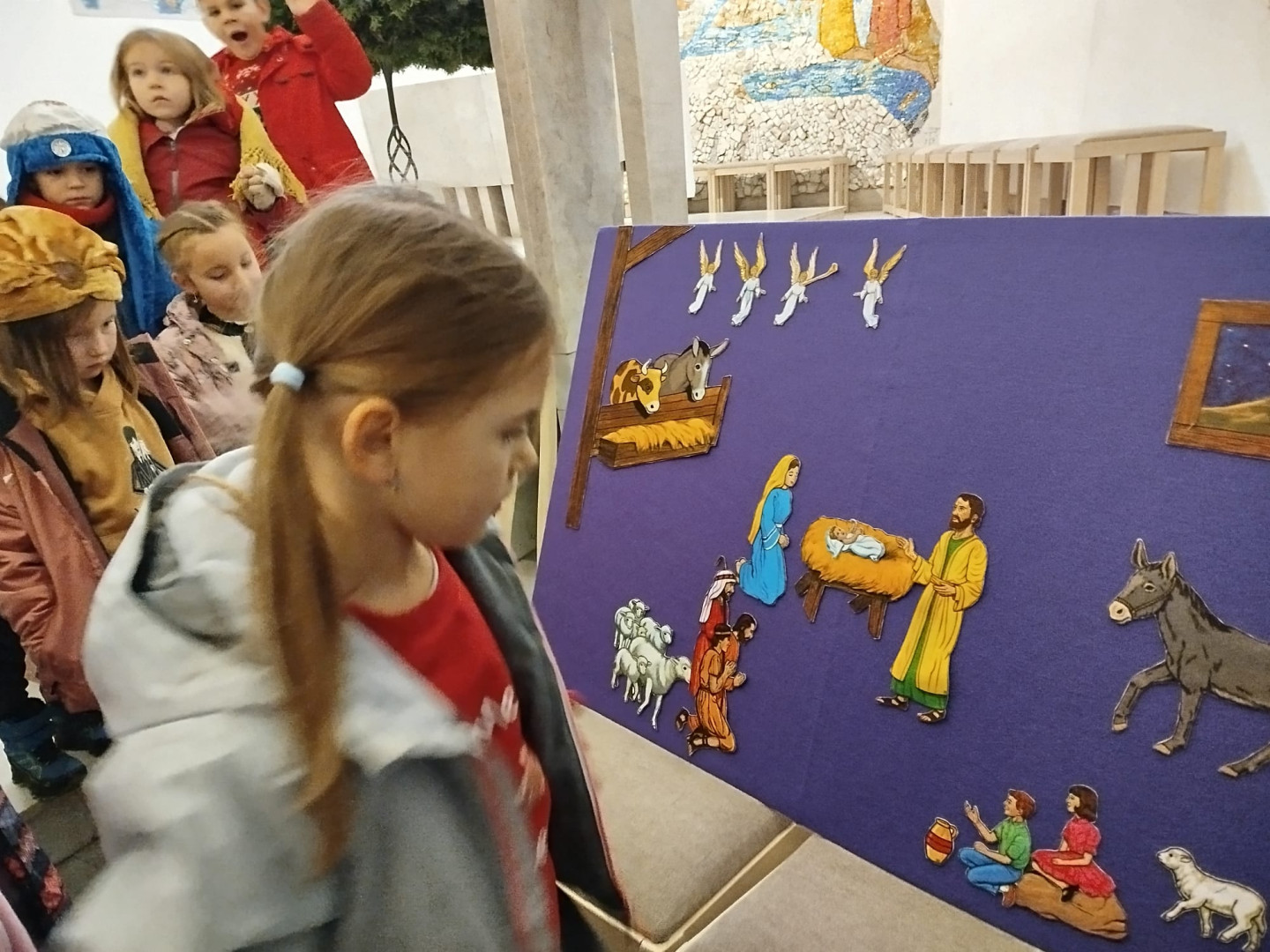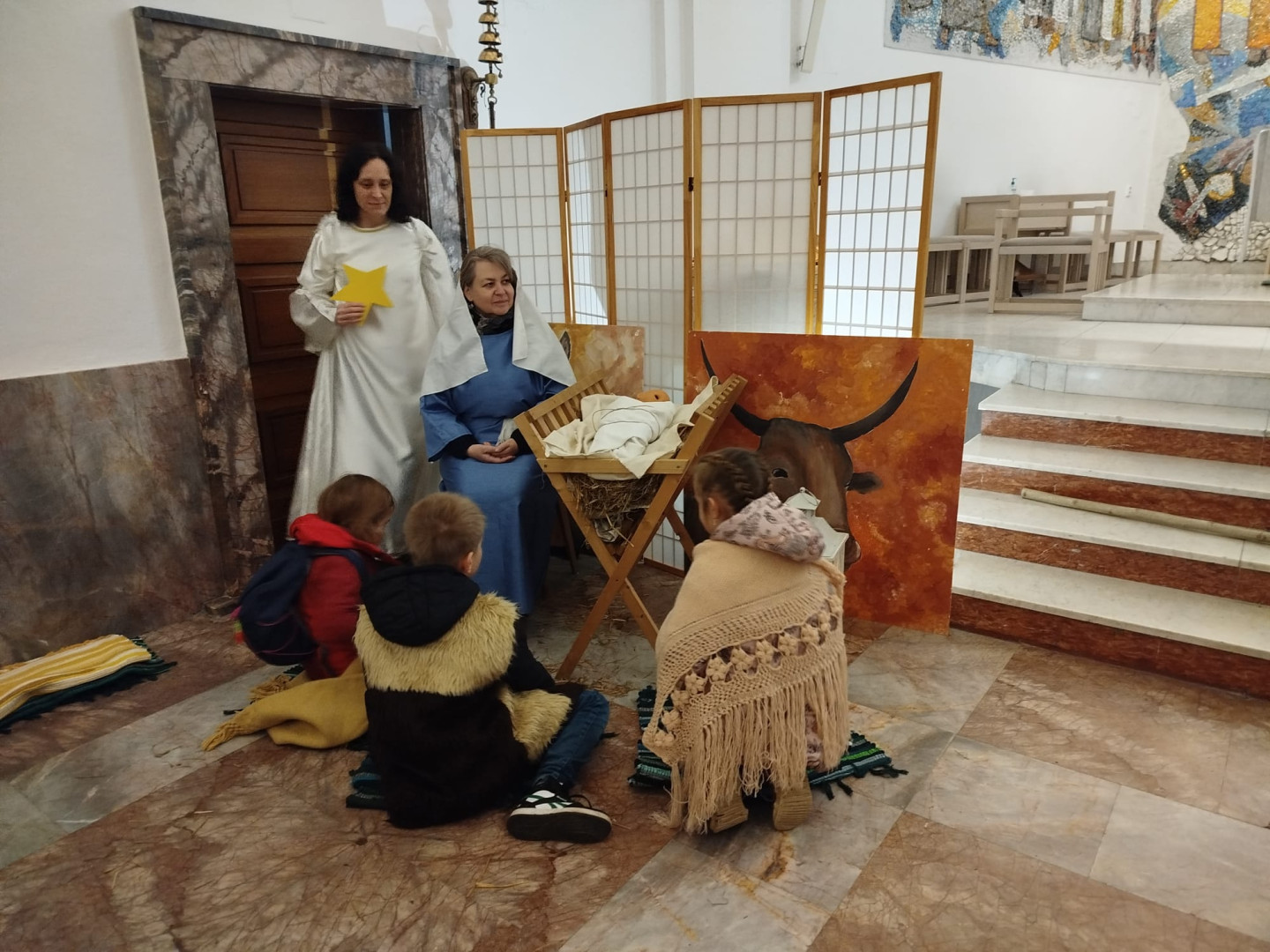 Dětem byl přiblížen také vánoční příběh – putování Josefa a Marie do Betléma. Paní učitelka se proměnila v Pannu Marii a z dětí se stali pastýři a tři králové.