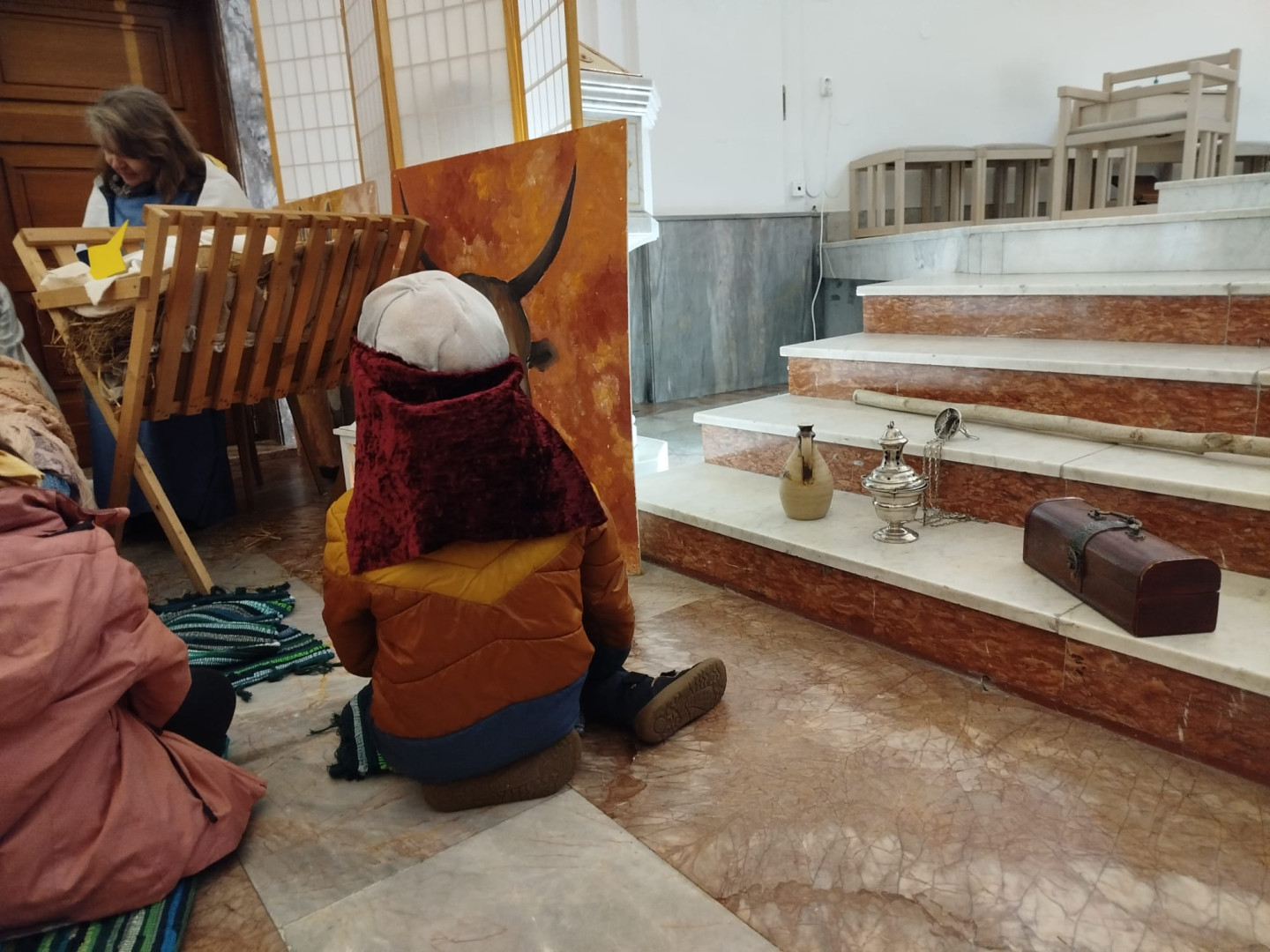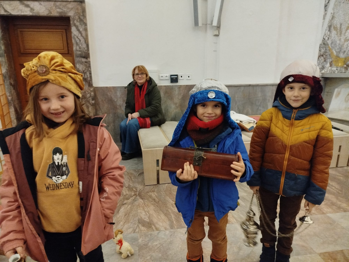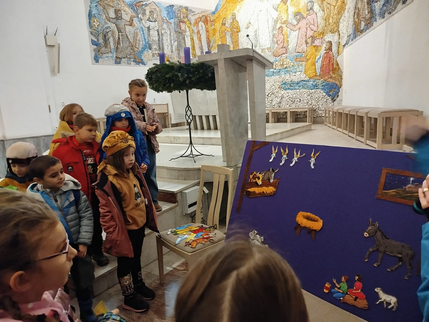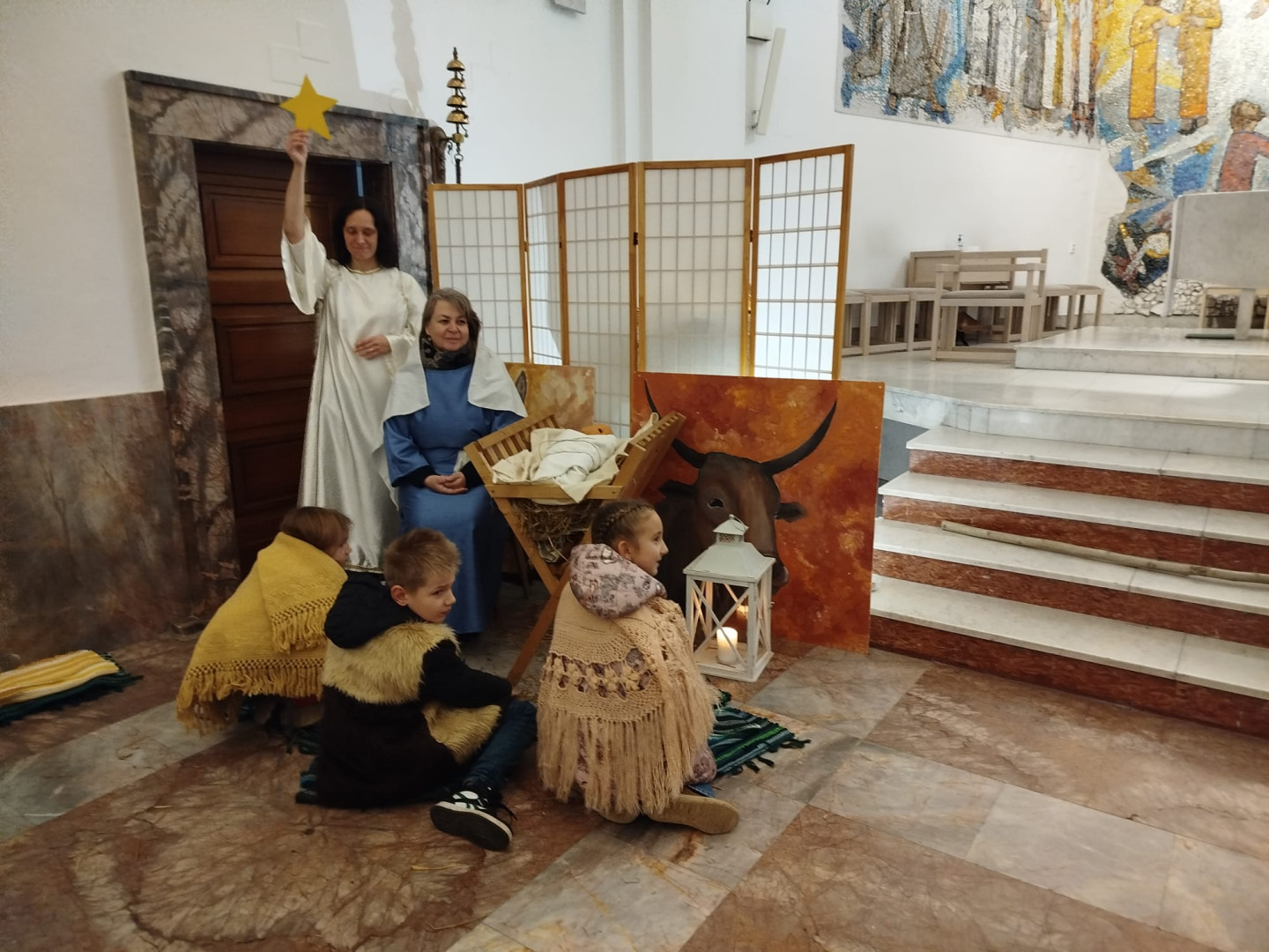 Dětem byl přiblížen také vánoční příběh – putování Josefa a Marie do Betléma. Paní učitelka se proměnila v Pannu Marii a z dětí se stali pastýři a tři králové.