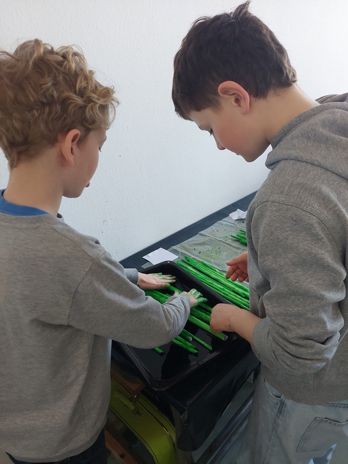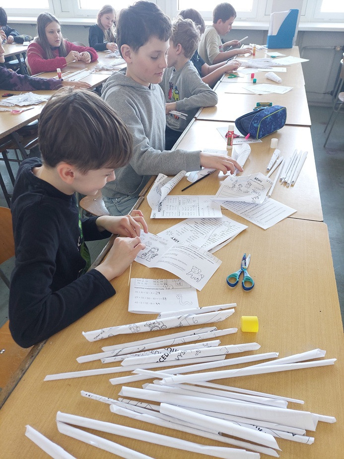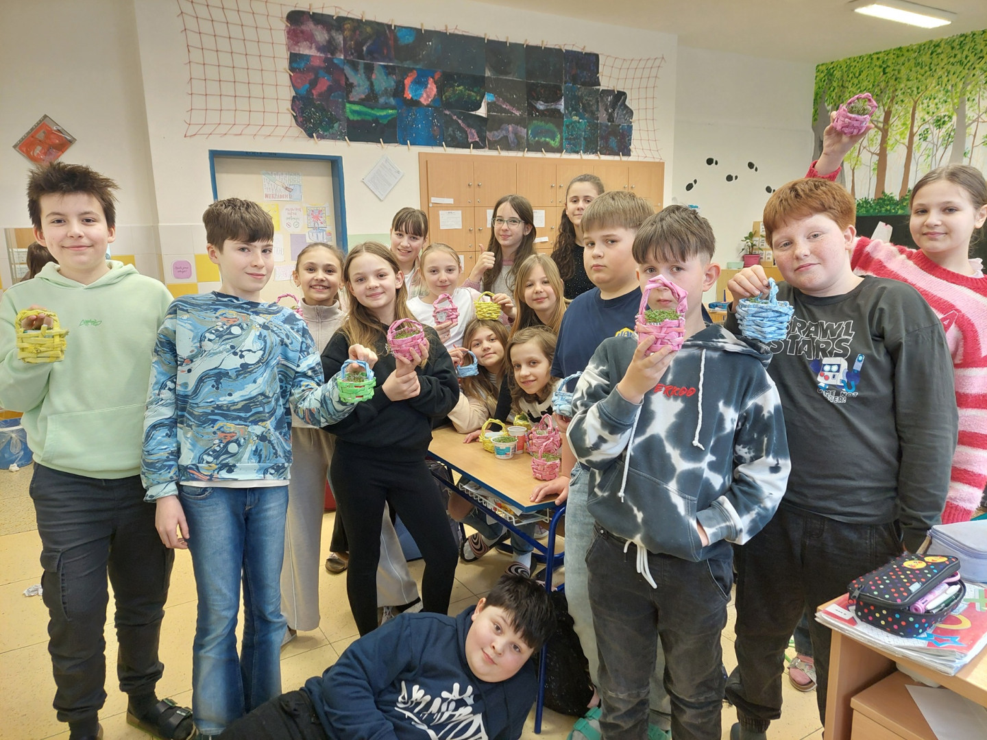 V 5. B se nelenilo a s přípravami na Velikonoce začaly děti už měsíc předem. V plánu bylo vyzkoušet si tradiční řemeslo – pletení košíků. A to zkrátka není program na jednu vyučovací hodinu. Nevadí, my se tak lehce nevzdáme!