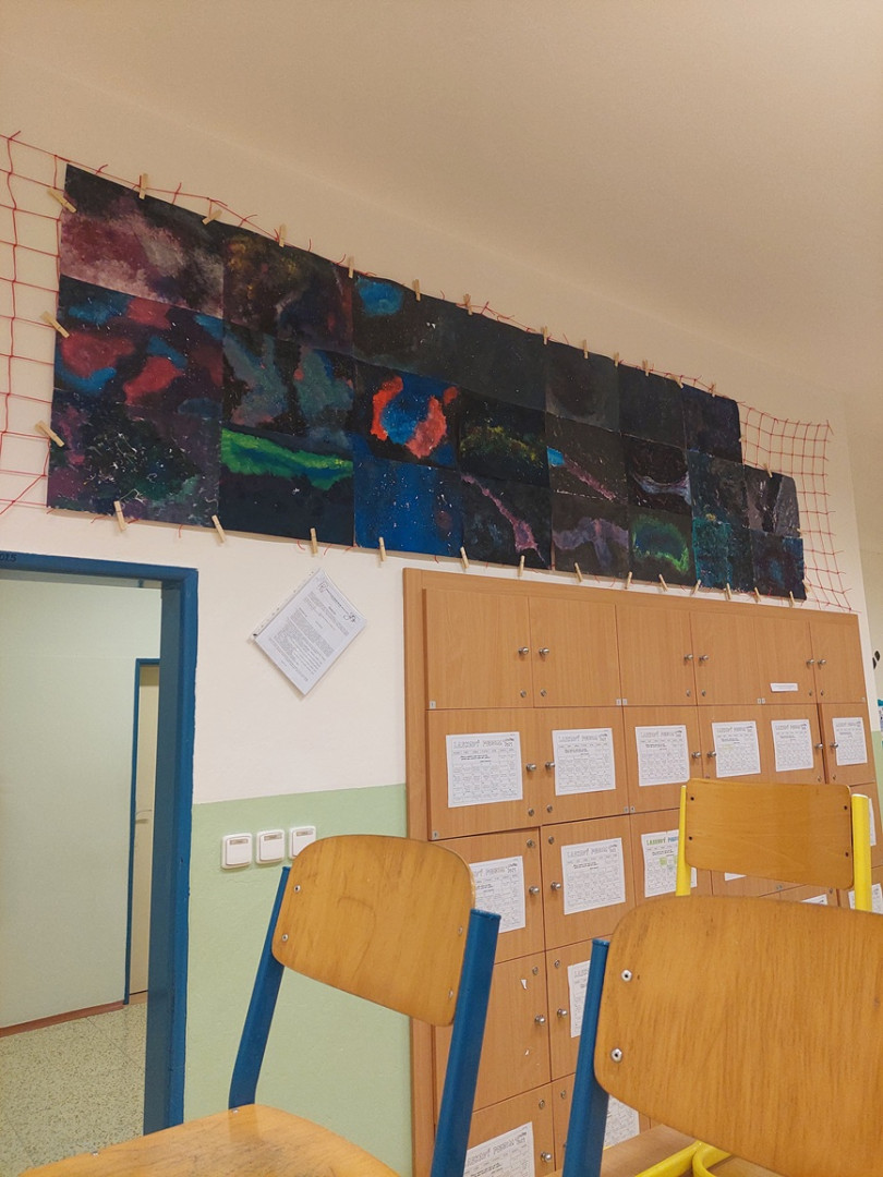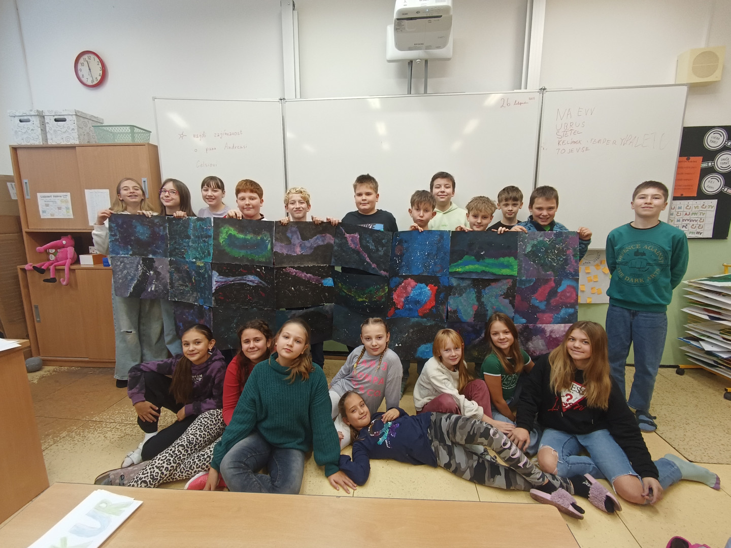 Ve třídě 5. B se listopad nese v duchu kosmické nálady. Téma vesmíru jsme si z přírodovědy vypůjčili i do výtvarné a hudební výchovy a také do pracovních činností. Na výtvory žáků se můžete podívat v galerii a k tomu si pustit písničky, k nimž žáci napsali sami texty a umělá inteligence je poté zhudebnila. Přejeme hezkou podívanou i příjemný poslech.