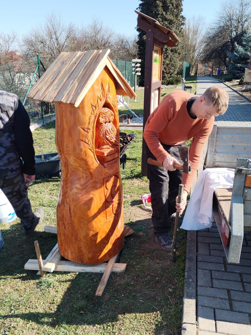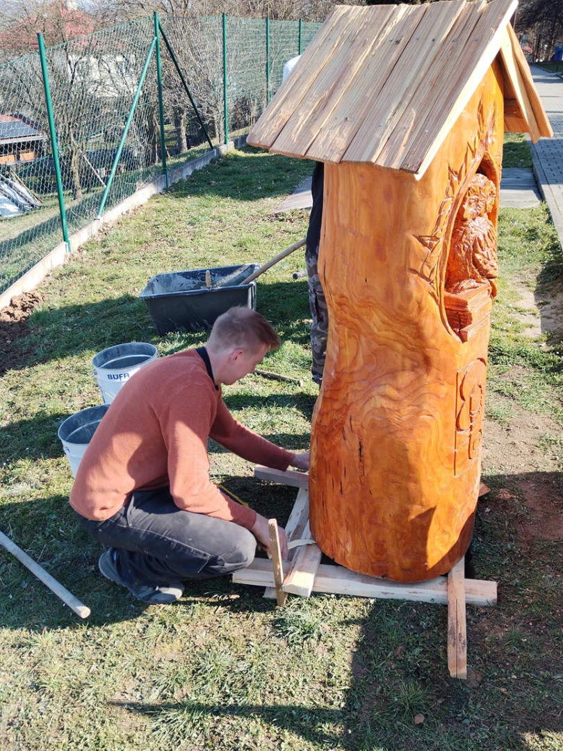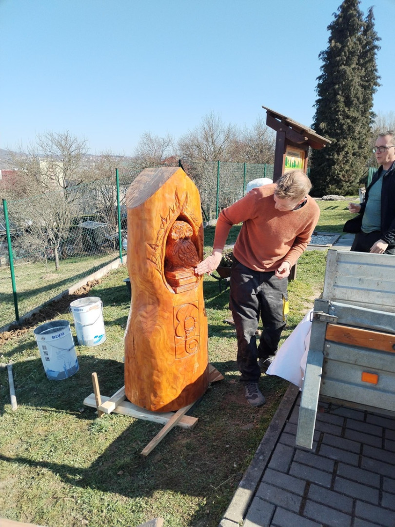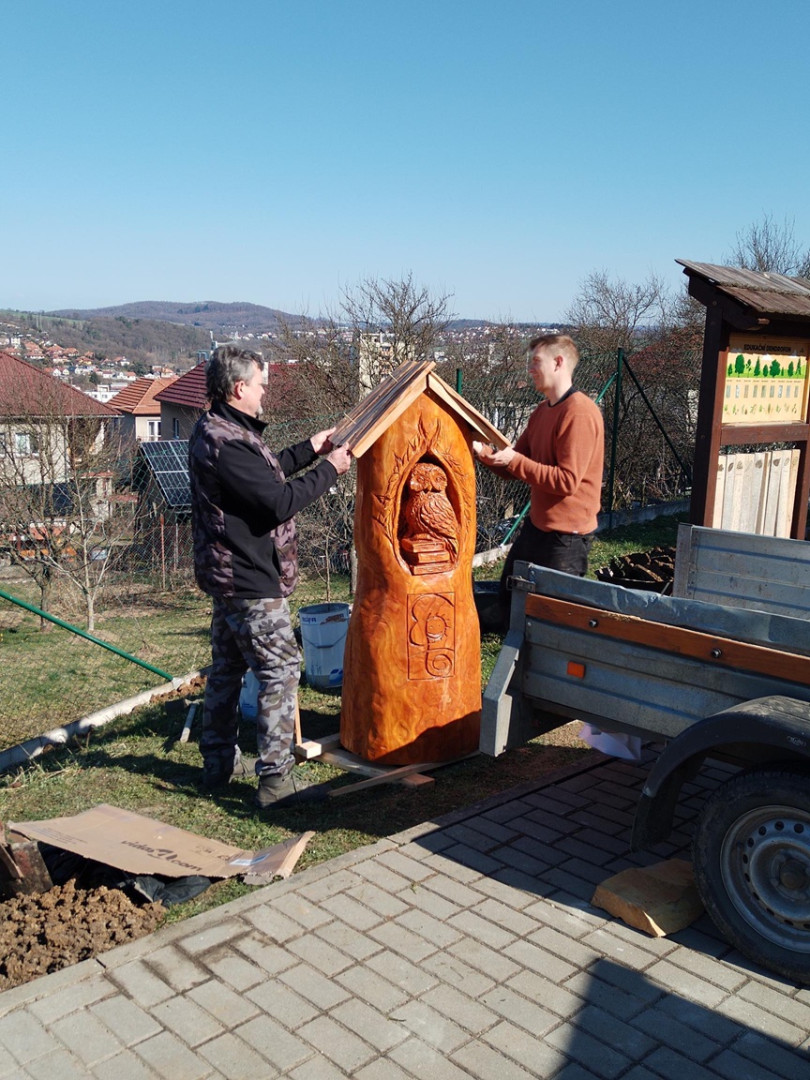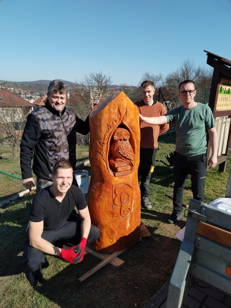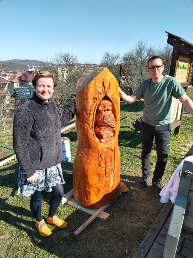 Na pozemku naší školy byla instalována nová dřevěná socha, která vznikla z kmene pokáceného modřínu. Strom, jenž byl z bezpečnostních důvodů odstraněn, tak dostal druhý život v podobě uměleckého díla, které nyní zdobí školní areál.