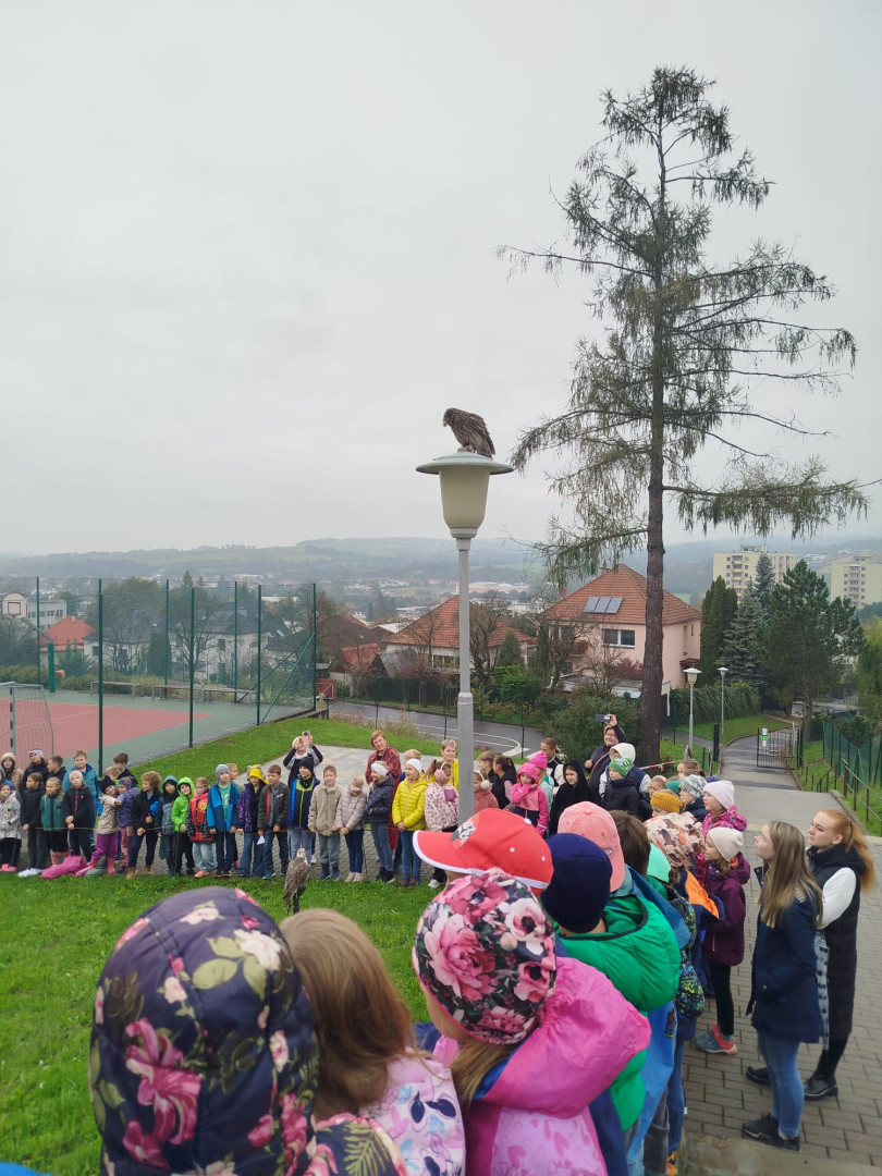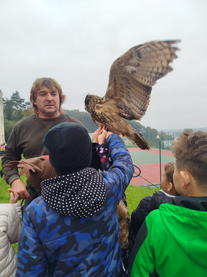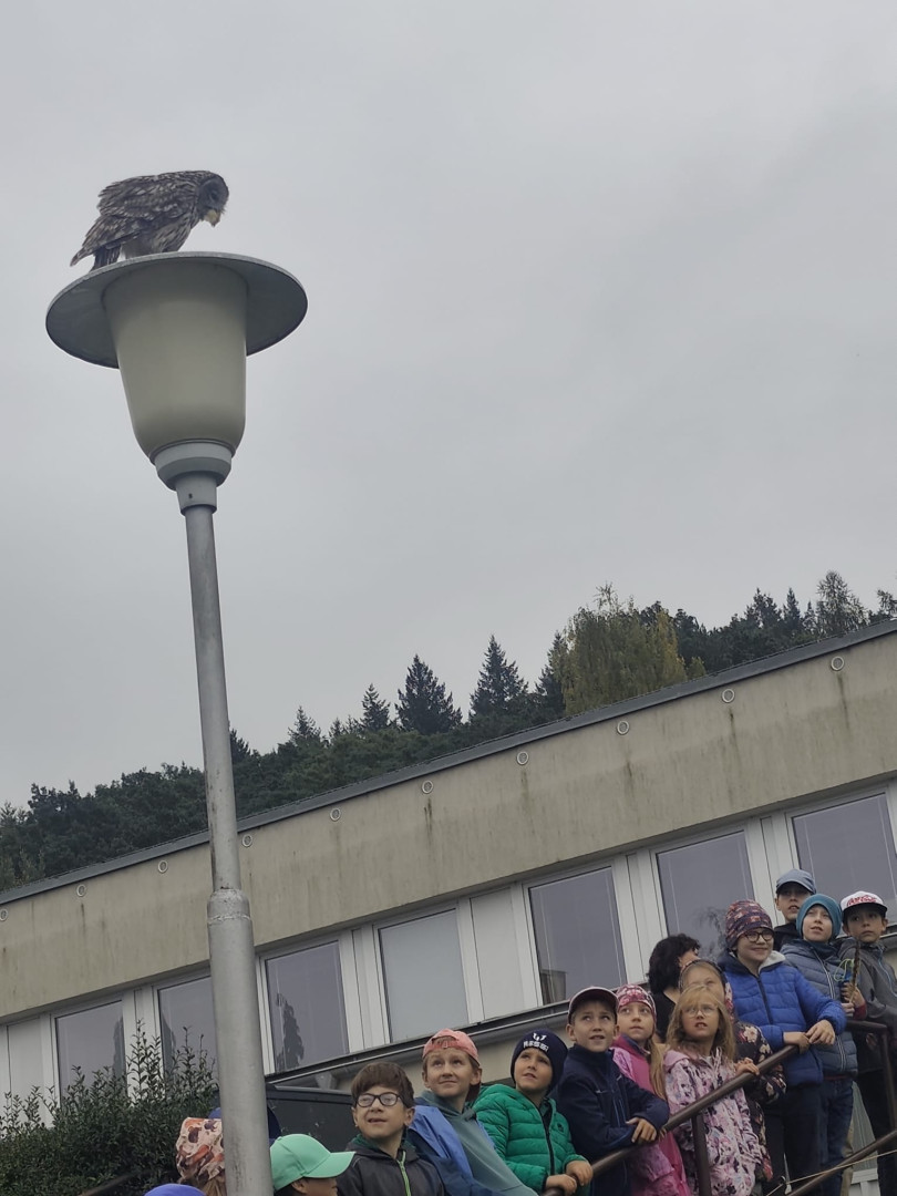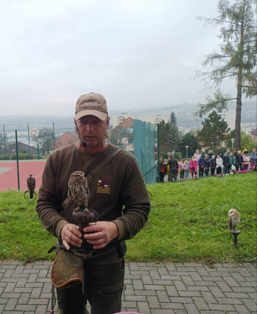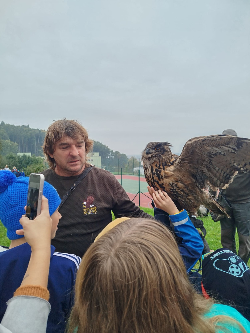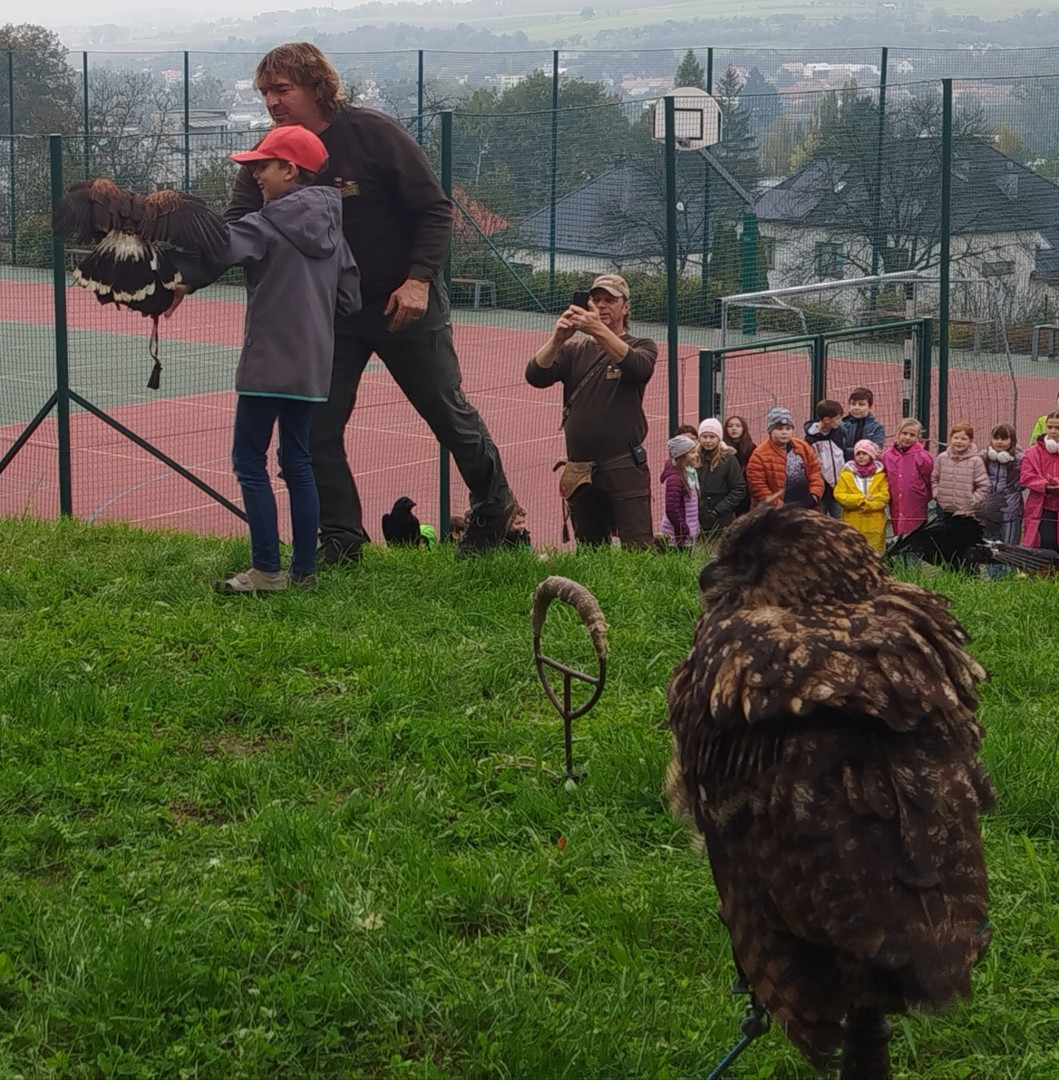 V čtvrtek 9. října se celá naše škola zúčastnila přehlídky dravců a sov. Žáci měli možnost si všechny ptáky prohlédnout a po dobu hodinového programu se zaposlouchat do poutavého vyprávění o zástupcích ptačí říše.