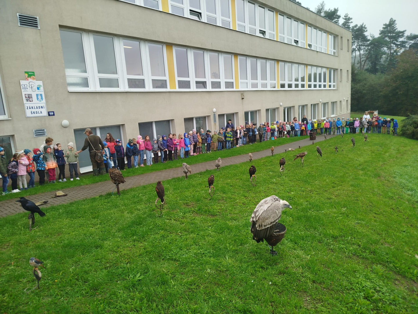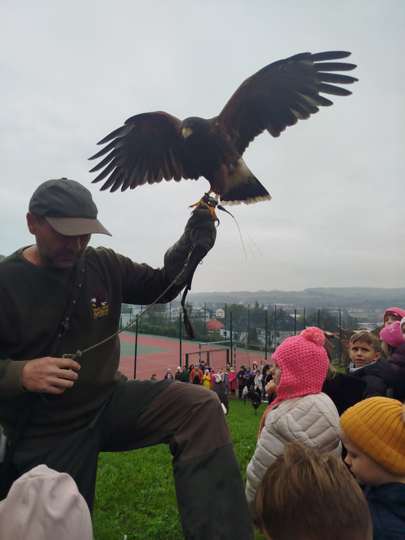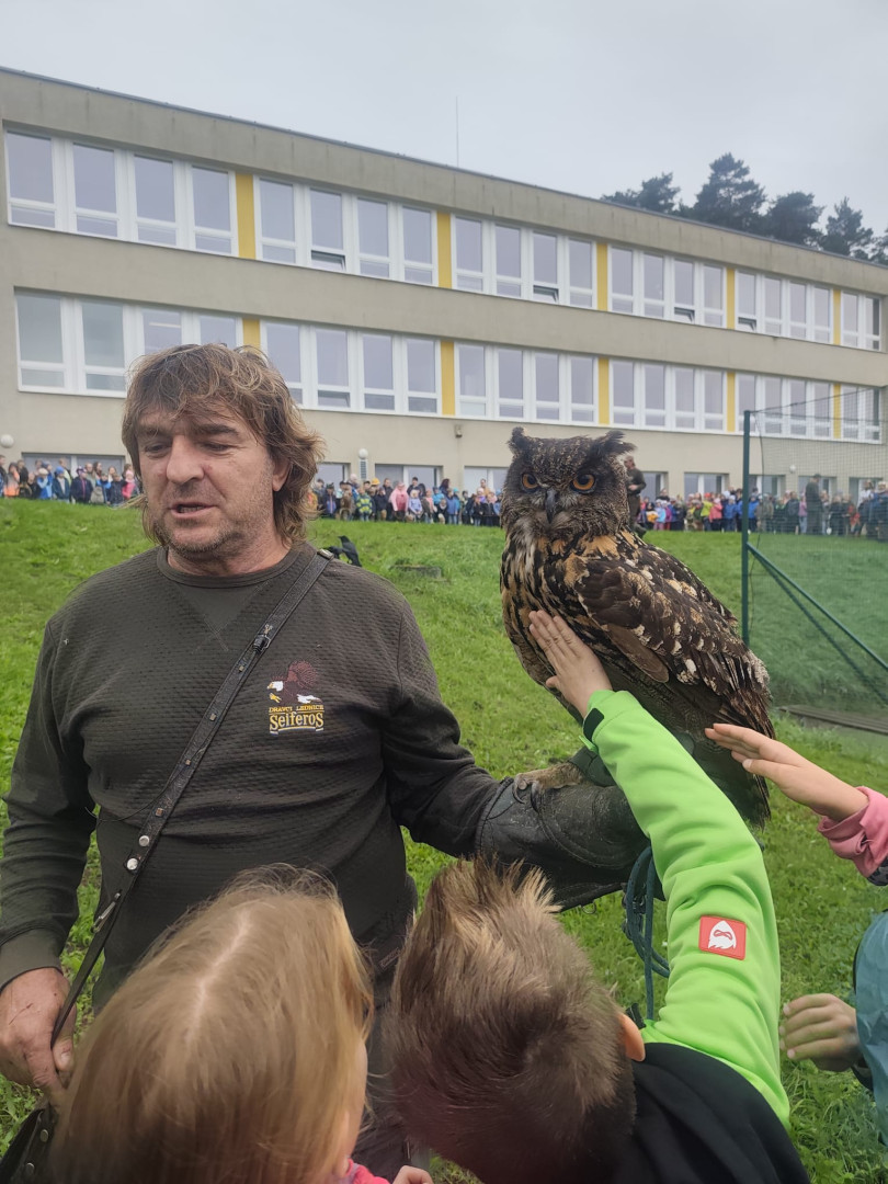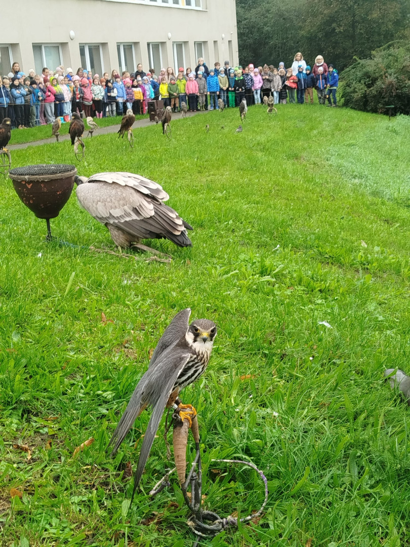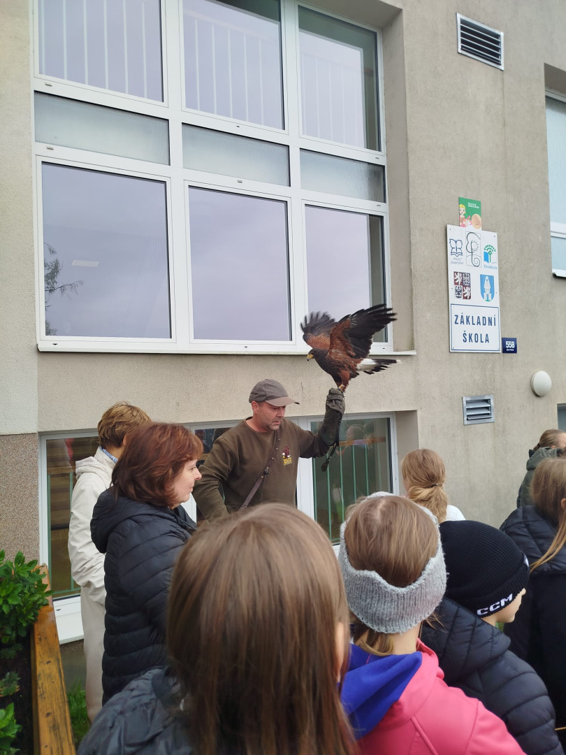 V čtvrtek 9. října se celá naše škola zúčastnila přehlídky dravců a sov. Žáci měli možnost si všechny ptáky prohlédnout a po dobu hodinového programu se zaposlouchat do poutavého vyprávění o zástupcích ptačí říše.