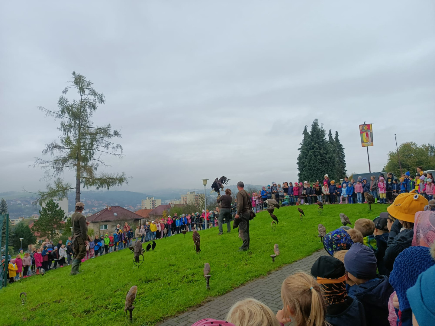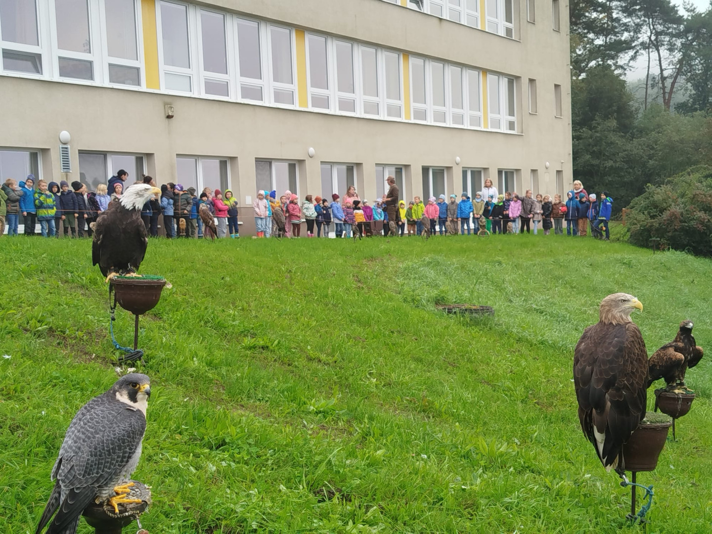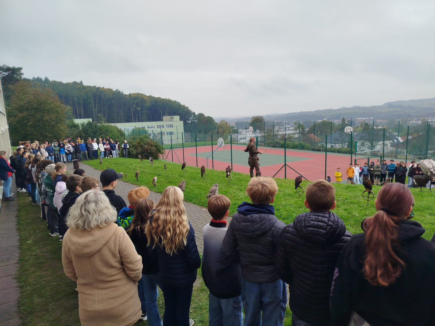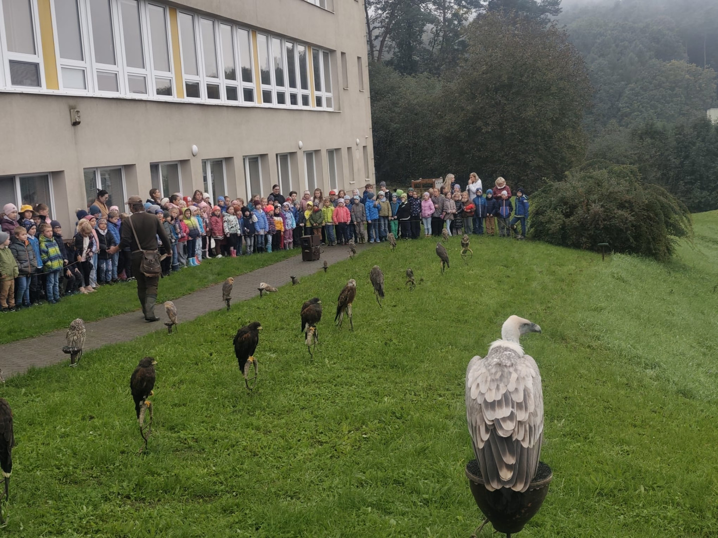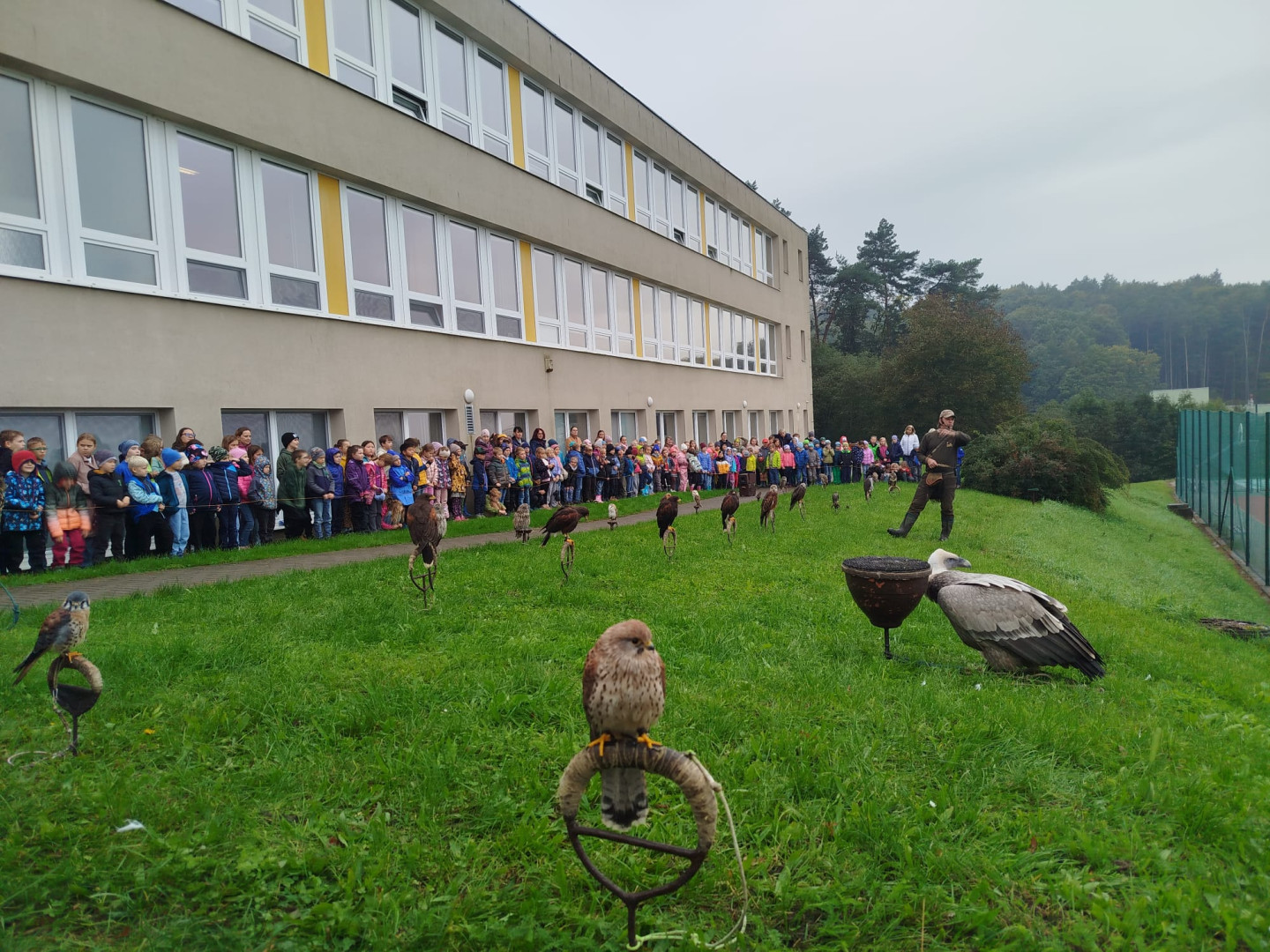 V čtvrtek 9. října se celá naše škola zúčastnila přehlídky dravců a sov. Žáci měli možnost si všechny ptáky prohlédnout a po dobu hodinového programu se zaposlouchat do poutavého vyprávění o zástupcích ptačí říše.